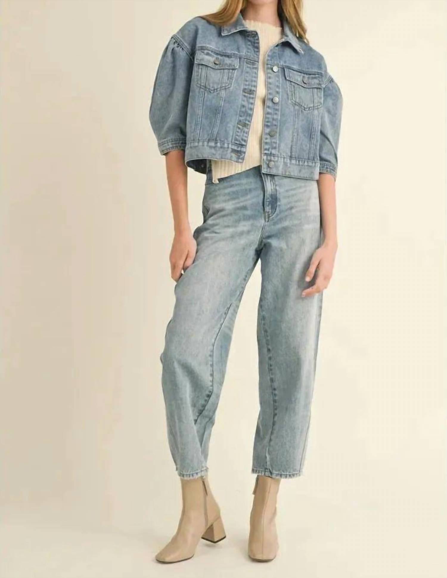 Upgrade your wardrobe with these cropped pants, designed to merge sophistication and wearability. The tailored fit ensures ultimate comfort during long days or nights out. Discover the Lux Barrel Pants by MIOU MUSE, the perfect addition to any streetwear collection. These women's denim pants feature a straight leg design with both front and back pockets for added practicality. Crafted from a cotton blend of 90% cotton, 6% polyester, and 4% viscose, they offer comfort and ease of movement. Closure comes in a convenient button and zip style. Care: Hand wash cold, do not bleach, line dry.