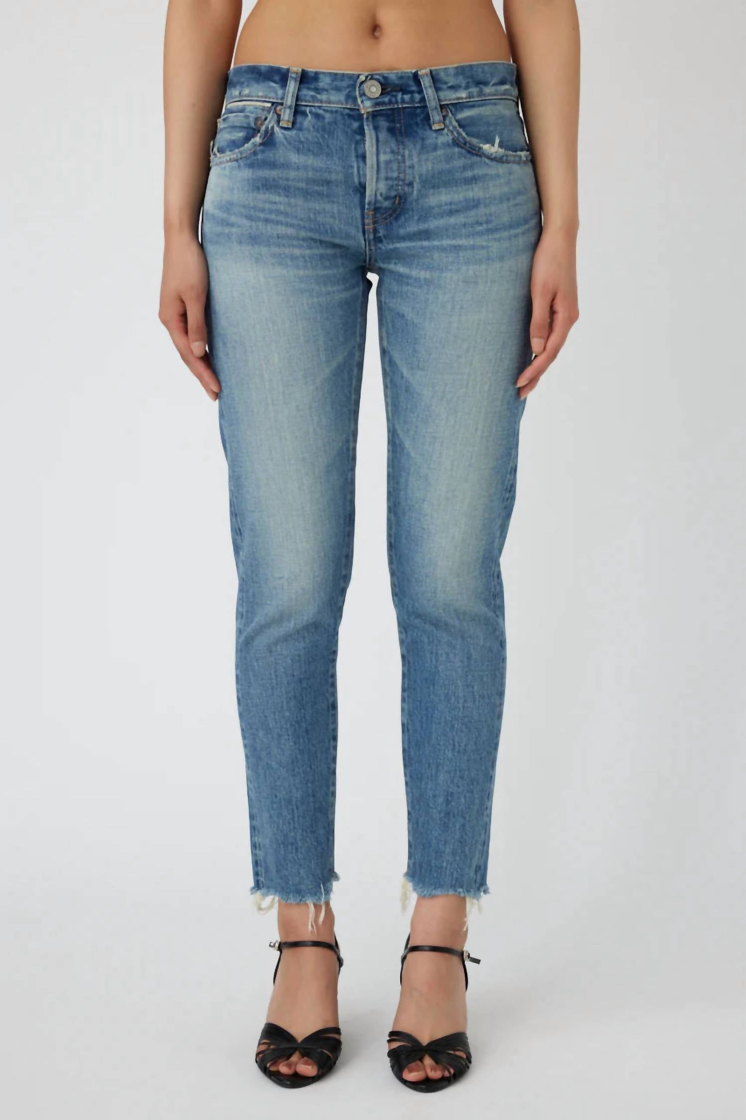 Upgrade your wardrobe with these cropped pants, designed to merge sophistication and wearability. The tailored fit ensures ultimate comfort during long days or nights out. Discover the Moussy Banksville Tapered Pants in light blue, a minimalist staple perfect for your spring wardrobe. Crafted from 100% cotton, these jeans feature a slim fit with a tapered leg, enhanced by light fading and a raw hem for a modern edge. The button closure adds a classic touch, while the solid pattern keeps it versatile for any occasion, be it a dinner party or casual outing. For care, simply machine wash and line dry to maintain their fresh, light wash appeal.