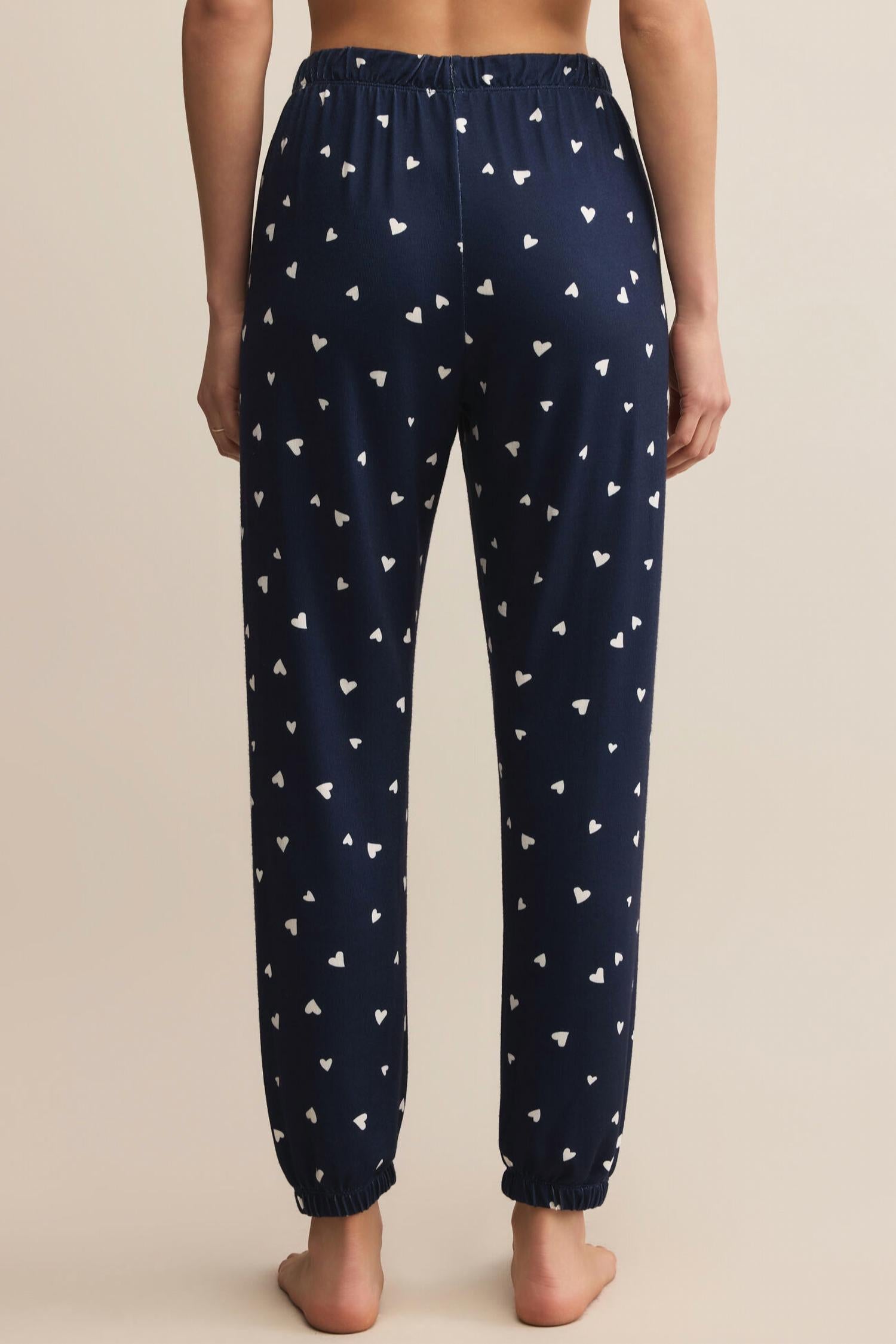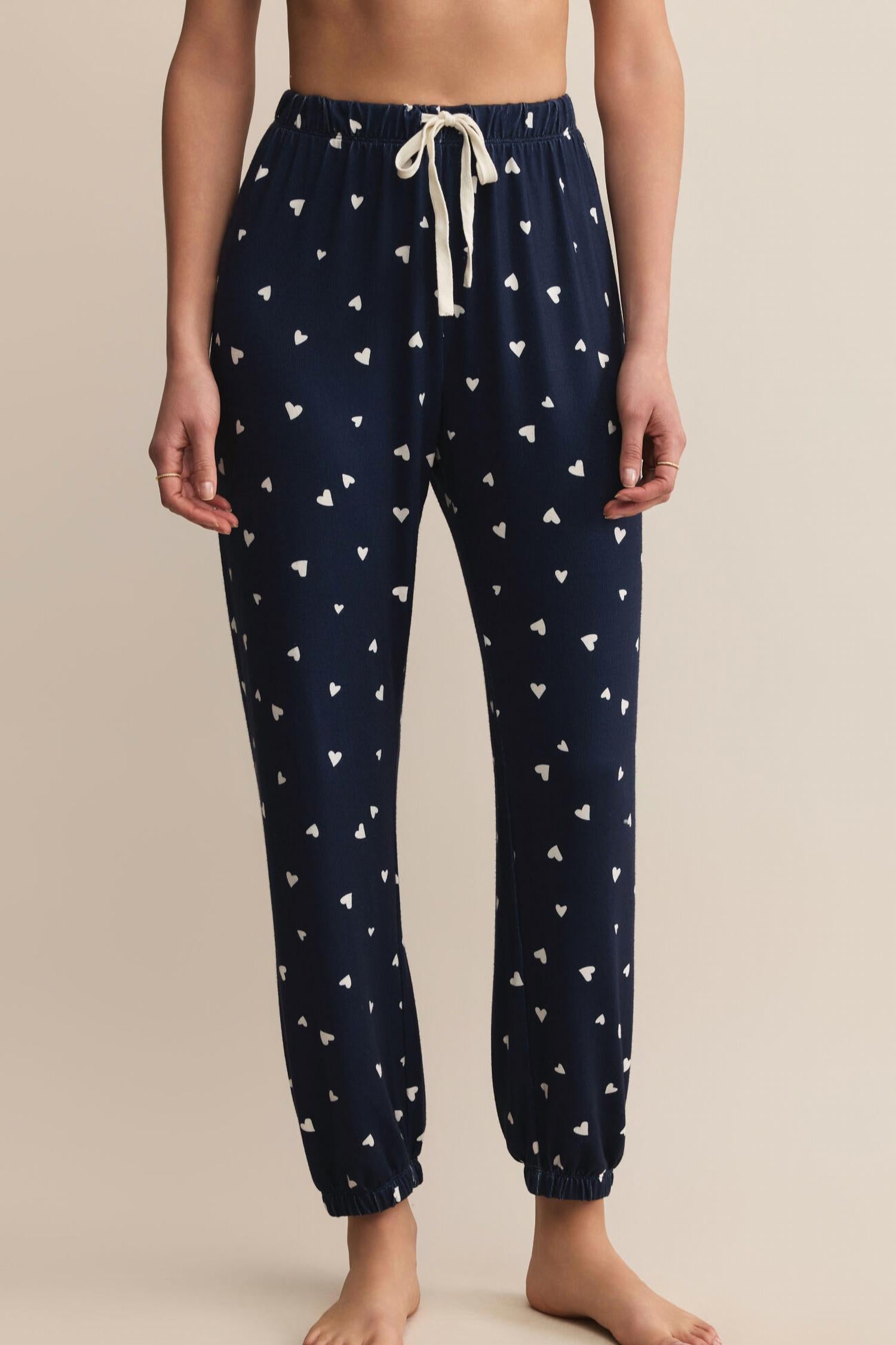 Enhance your wardrobe with this trendy cropped number, designed to blend style and practicality. The comfortable fit allows for easy all-day wear. The perfect length to pair with your favorite mules. Experience comfort and style with the Classic Heart Jogger by Z Supply, crafted from a silky jersey blend of 95% polyester and 5% elastane. Designed for women, these ankle-length joggers in rich eclipse are perfect for a patterned, high-rise fit that elegantly tapers at the leg. The tie closure drawcord waistband ensures a snug fit, while their lightweight and heavy soft wash finish offer a luxurious feel, complete with a 27.5" inseam. Care is a breeze with machine wash and tumble dry instructions.
