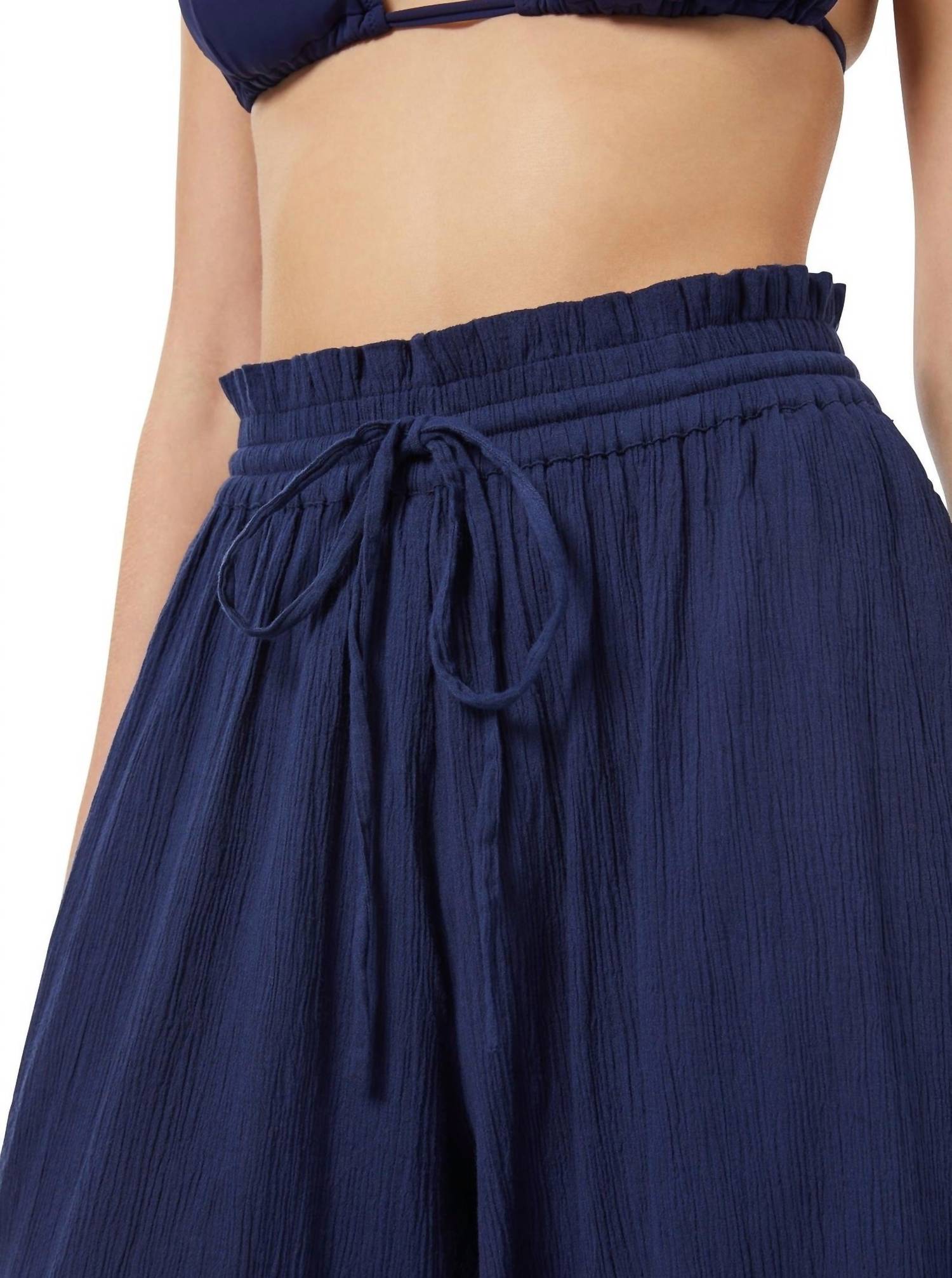 Enhance your wardrobe with this trendy cropped number, designed to blend style and practicality. The comfortable fit allows for easy all-day wear. The perfect length to pair with your favorite mules. These women's ankle-length pants feature a wide leg silhouette, elastic waistband with a 12.5" front rise, and 24.5" inseam, ensuring both style and comfort. Crafted from 100% certified organic cotton, they are breathable with a lightweight crinkle gauze texture. Designed with handy side seam pockets, these pull-on pants also include an adjustable drawstring with tassel details. Care for them is simple: machine wash on a gentle cycle with cold water and tumble dry low.
