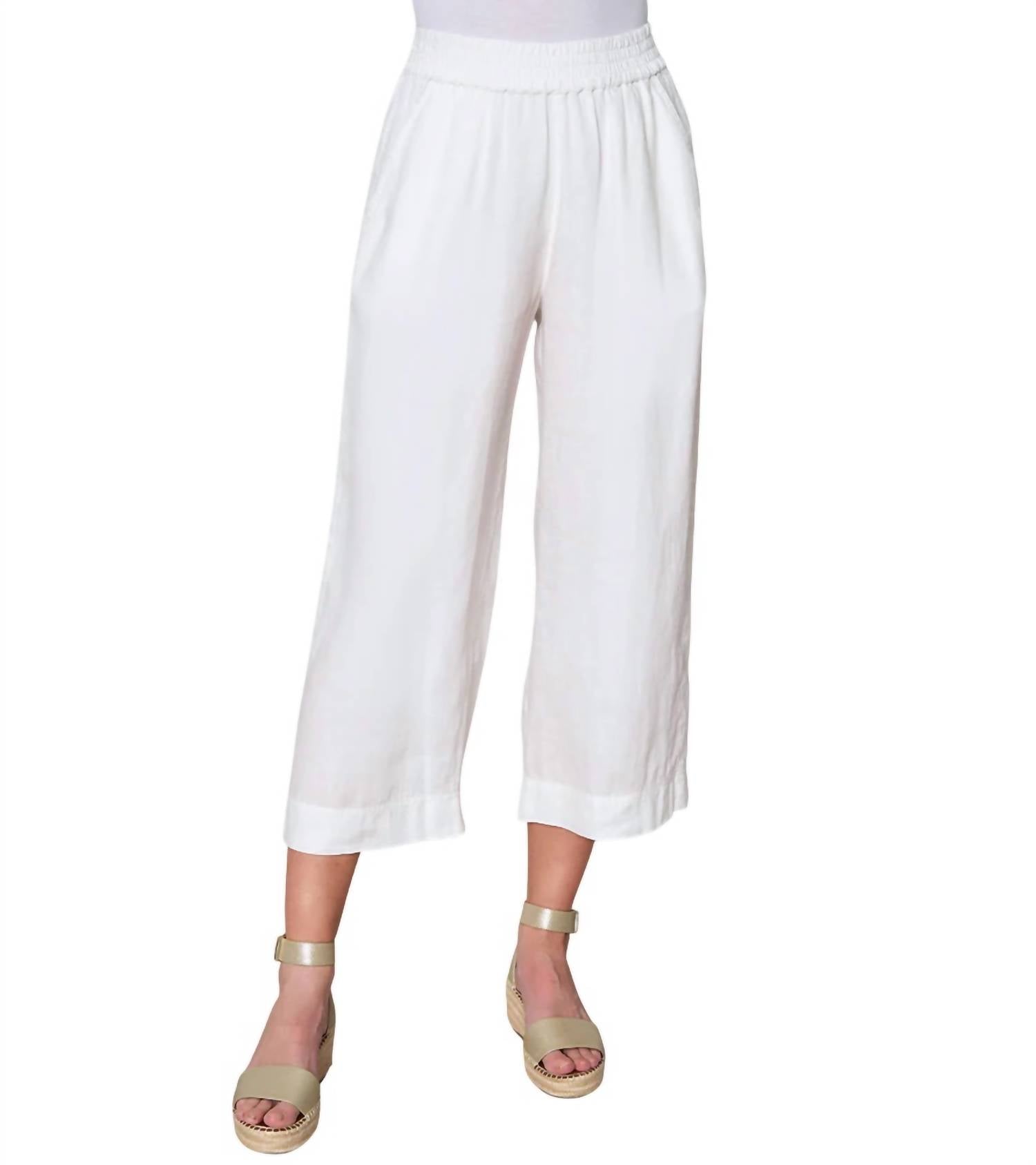 Crafted from breezy linen. Easy fit and flattering cropped design. Inseam is approximately 23" on size S. Model above is 5'11" wearing size S.