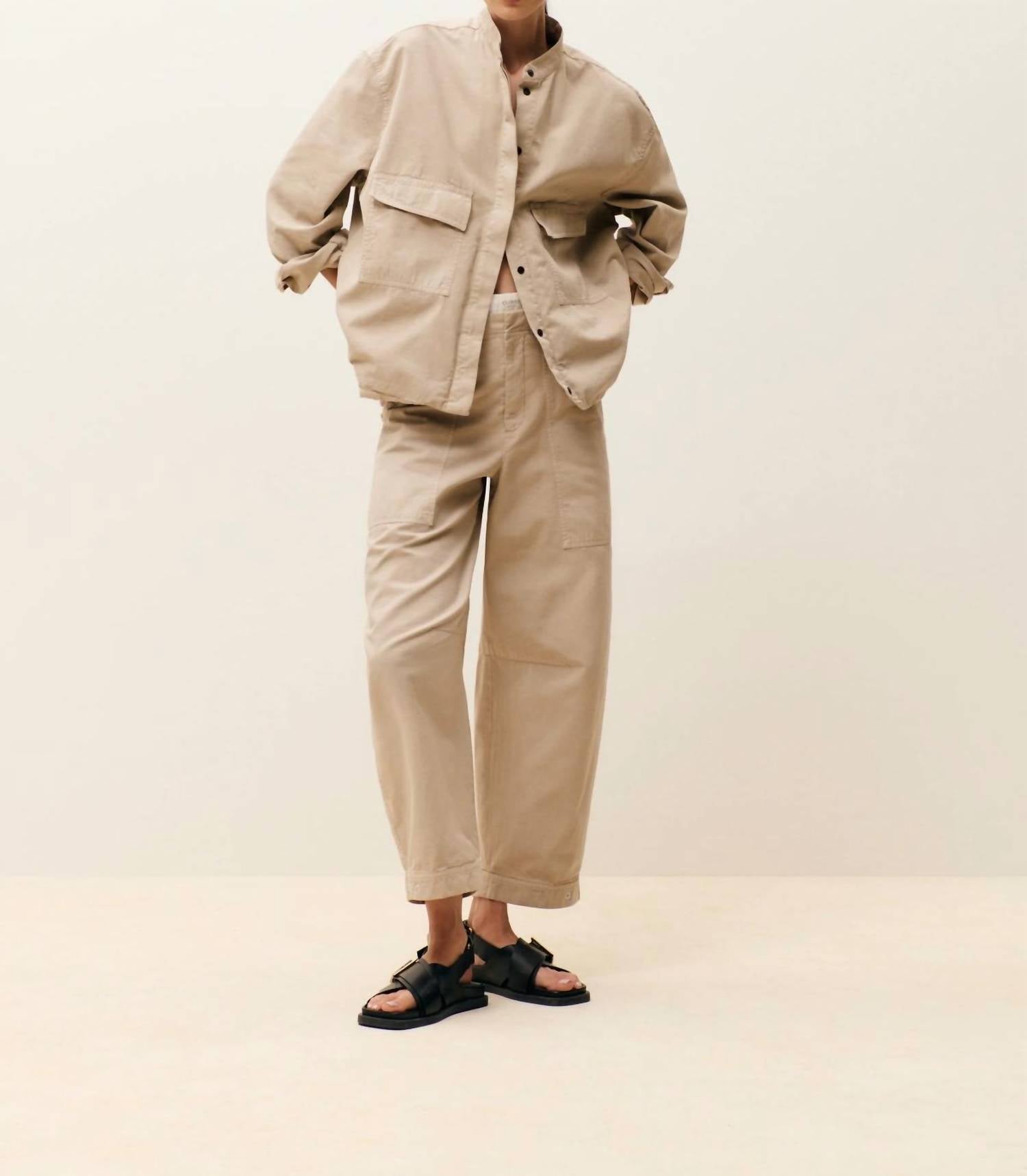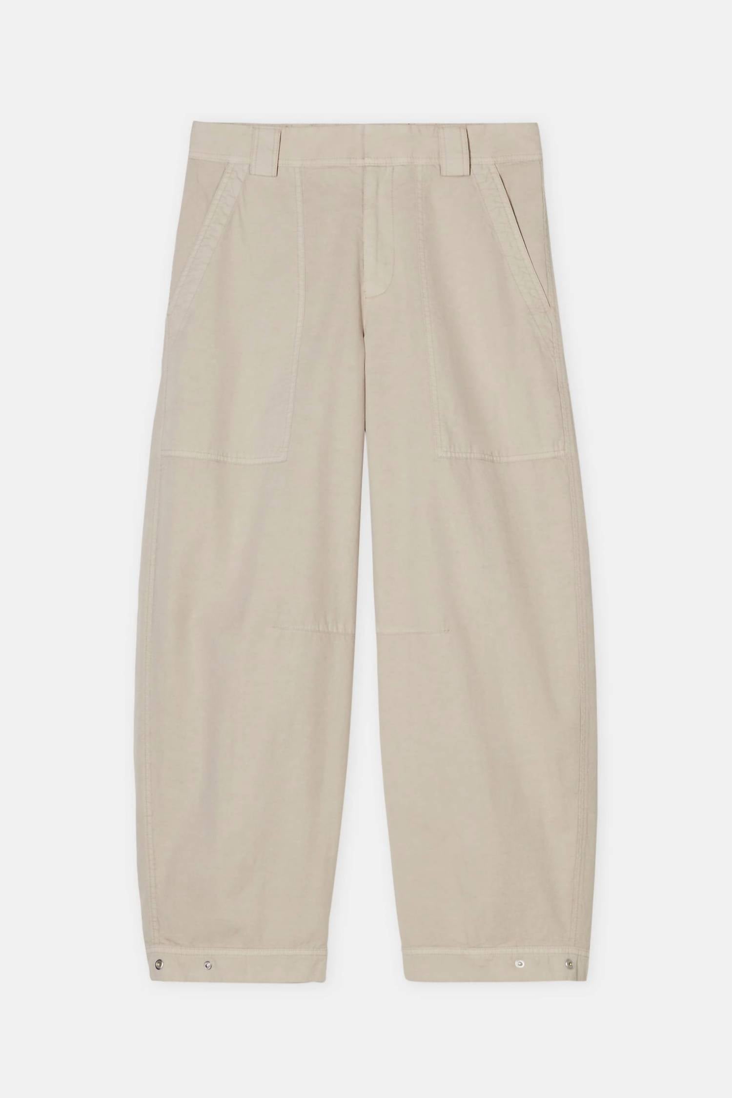 Enhance your wardrobe with this trendy cropped number, designed to blend style and practicality. The comfortable fit allows for easy all-day wear. The perfect length to pair with your favorite mules. Discover the Rhannon Pants by CLOSED in a chic Soft Beige, tailored for a minimalist and travel-ready style. These mid-rise, barrel-fit pants feature a relaxed fit with a cropped straight leg, perfect for modern elegance. Crafted from 70% cotton, 29% viscose, and 1% nylon, with a zip closure, these pants are made in Romania with fabric sourced from Italy. Care for them easily with machine wash and tumble dry instructions. Model is wearing size 27/32 with an inside leg length of approximately 69 cm, a front rise of 32.5 cm, and a leg opening of 23.5 cm.