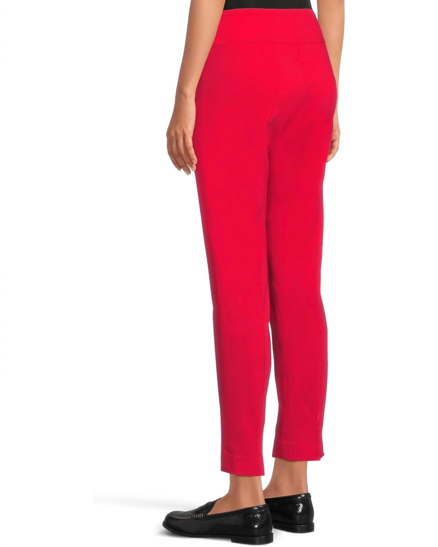 Upgrade your wardrobe with these cropped pants, designed to merge sophistication and wearability. The tailored fit ensures ultimate comfort during long days or nights out. Discover the Elliott Lauren Ankle Back Slit Pant, stylishly crafted for the modern woman in a vibrant hue. These pull-on ankle pants feature a slim-fitting stretch composition, composed of 76% rayon, 21% nylon, and 3% spandex, and are made in the USA. Designed with a flat elastic waistband and a subtle back slit detail, they offer a chic straight leg silhouette with a 29-inch inseam, 9-inch front rise, and 11-inch back rise. Care for these pants effortlessly with machine wash cold and tumble dry instructions. Measurements for a size 2 include a waist of 28 inches and a 38-inch outseam.