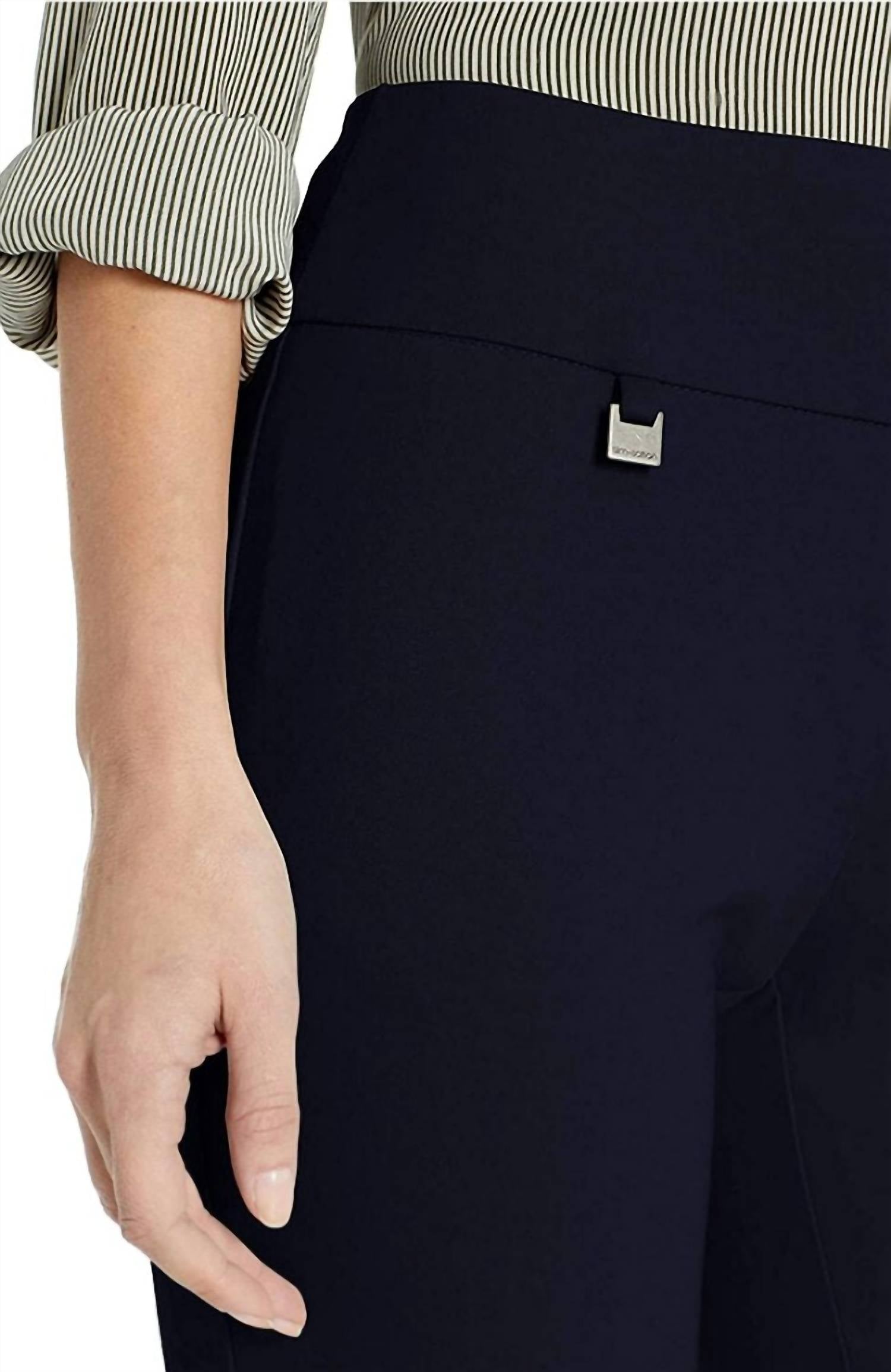 Stay on-trend and showcase your impeccable taste with these adaptable and stylish cropped pants. The perfect length to wear with your favorite mules. You'll love the fit! The Pull On Ease-y-fit Ankle Pants Petite by Slimsation By Multiples in Midnight are designed for maximum comfort and style. These pants feature a high-rise waist with an elastic pull-on closure, slimming the tummy, thighs, and rear with a straight narrow leg style. Made from a stretch fabric blend of 63% Rayon, 32% Nylon, and 5% Spandex, they are both wrinkle-resistant and perfect for enhancing the silhouette while maintaining ease of movement. Imported and machine washable, these petite pants have a 26" inseam, ideal for a sleek, tailored look for any dinner party this spring.