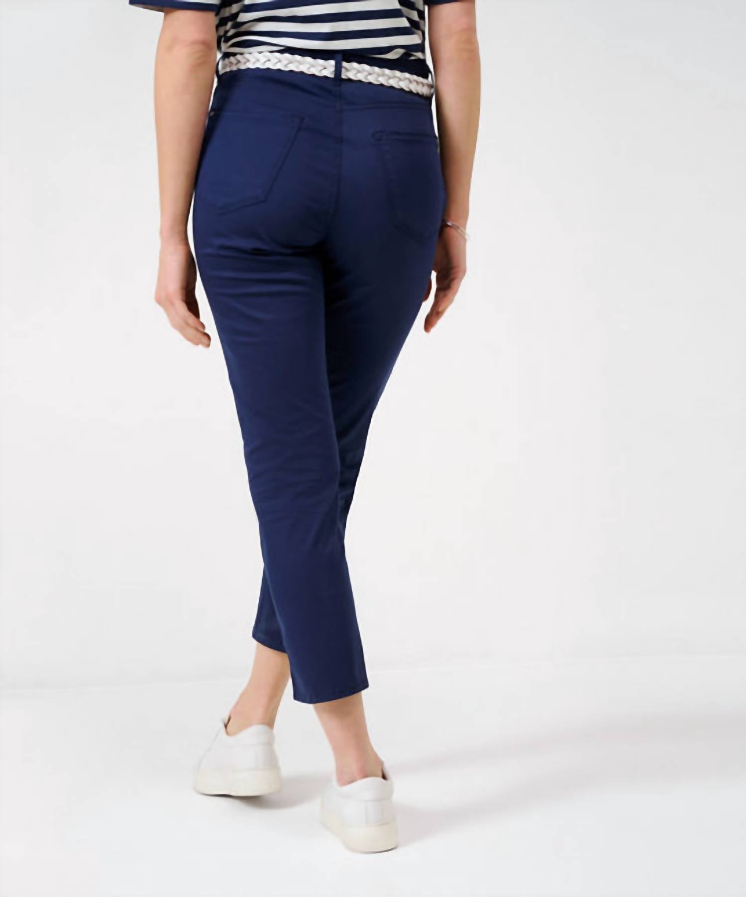 Upgrade your wardrobe with these cropped pants, designed to merge sophistication and wearability. The tailored fit ensures ultimate comfort during long days or nights out. Discover the Mary S Ultralight Five Pocket Pants by Brax, an essential wardrobe addition crafted for the modern woman. These navy pants, with an inseam of 29 inches, boast a straight leg design and a solid, plain color, perfect for a minimalist and travel-friendly style. Made from a skin-friendly cotton blend consisting of 97% cotton and 3% elastane, they offer exceptional comfort and ease of movement. Featuring a convenient button closure, these pants are easy to maintain with a machine wash on a gentle cycle; lay them flat to dry and avoid tumble drying for best results.