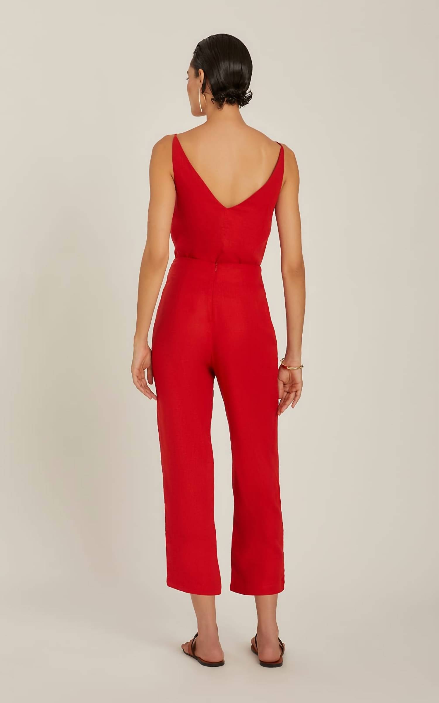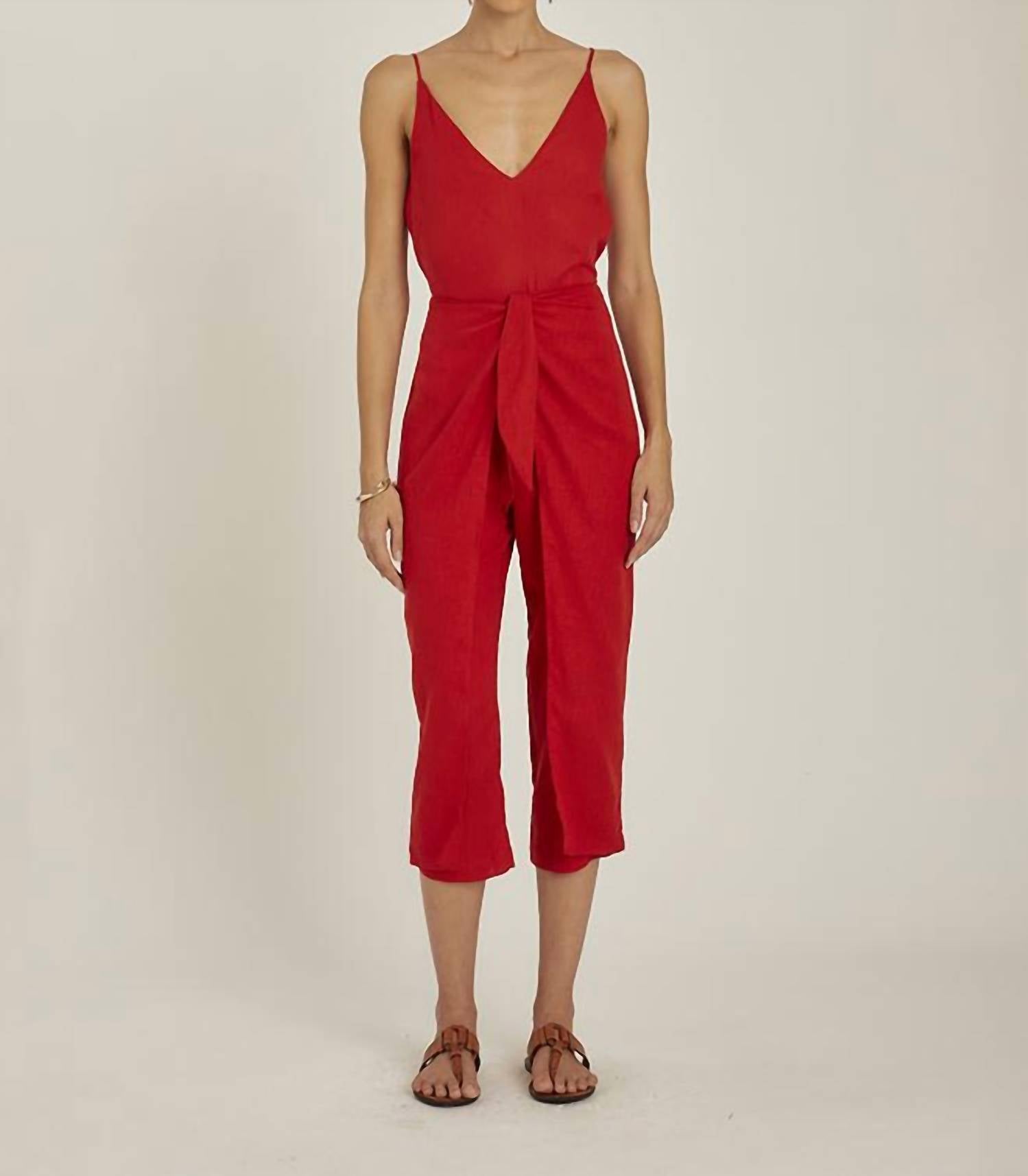 Upgrade your wardrobe with these cropped pants, designed to merge sophistication and wearability. The tailored fit ensures ultimate comfort during long days or nights out. Step out in style with the Tie Up Trouser Pants by Lenny Niemeyer, featuring a high-waist and stylish cropped leg for a chic look. Designed in a striking Paprika hue, these pants showcase a layered design with a front tie and concealed rear zip fastening. The regular fit and straight leg silhouette make it an effortless choice for a minimalist wardrobe, perfect for a dinner party or a special occasion like Valentine's Day. Care: Machine wash and tumble dry for easy maintenance.
