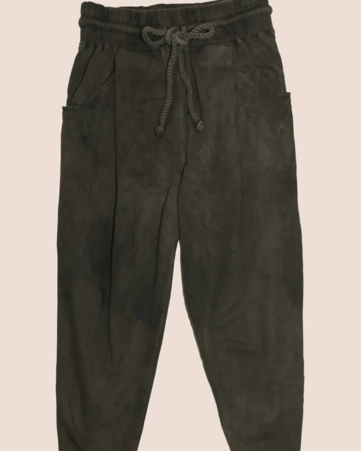 Upgrade your wardrobe with these cropped pants, designed to merge sophistication and wearability. The tailored fit ensures ultimate comfort during long days or nights out. Introducing the Dyed Sweatpants by The Waight, the perfect fusion of comfort and style for your streetwear ensembles. These high-rise, relaxed-fit sweatpants feature a tapered leg and tie closure, with the added convenience of fleece-lined pockets. Made from 100% organic cotton and hand-dyed in the USA, each piece flaunts a unique acorn green tie-dye pattern, achieved through a meticulous four-day process using acorn dye. Care for them effortlessly with machine wash instructions, and enjoy a sophisticated yet cozy look perfect for any casual occasion.