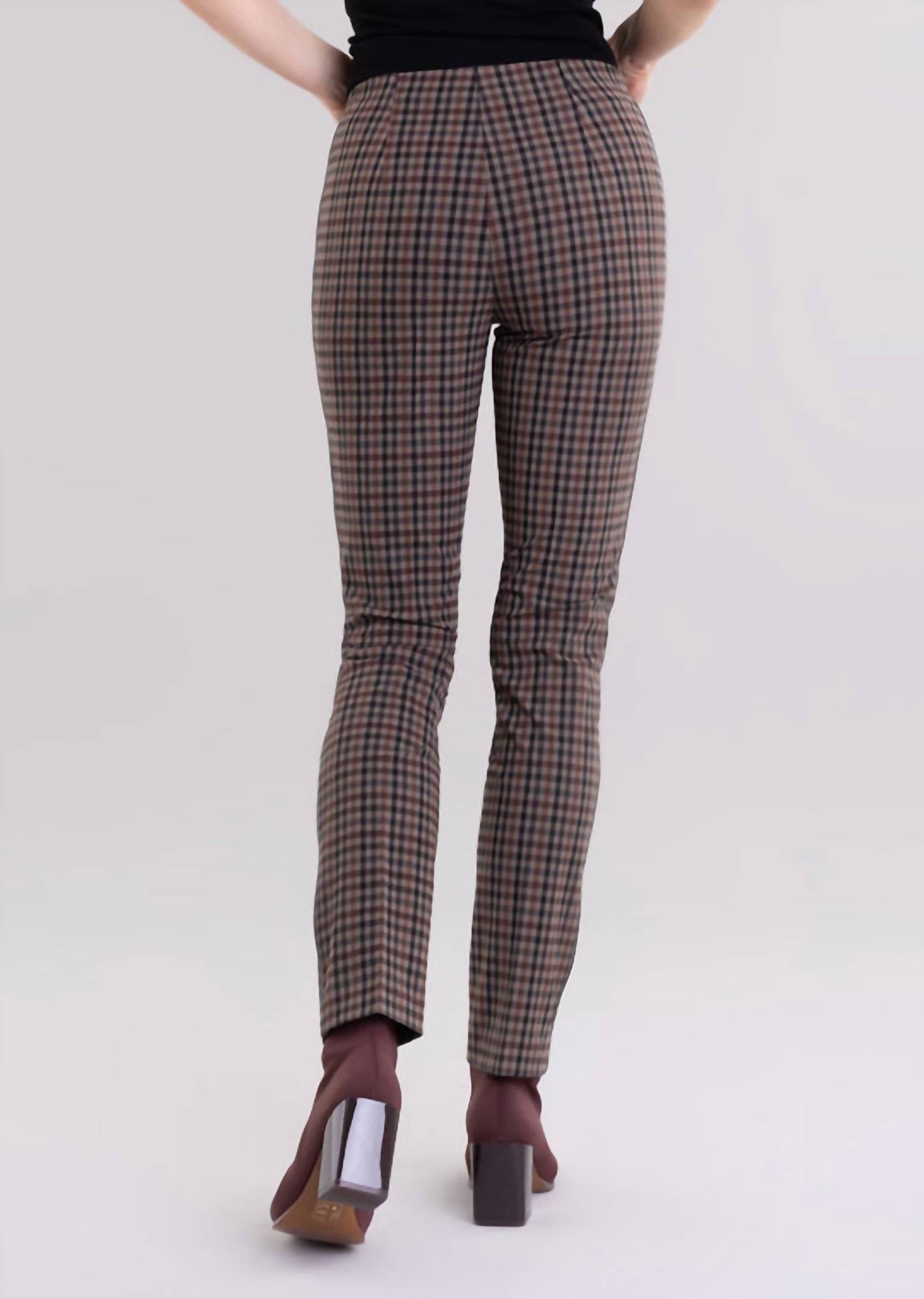 Upgrade your wardrobe with these cropped pants, designed to merge sophistication and wearability. The tailored fit ensures ultimate comfort during long days or nights out. Discover the Emery Plaid Slim Ankle Pants by LISETTE L, offering a chic look with their high-rise, slim fit, and straight leg style. Crafted from polyester in Canada, these pants boast a brown plaid pattern, perfect for adding a vintage touch to your spring wardrobe. Designed with a pull-on closure for easy wear, they are ideal for special occasions like a Thanksgiving or holiday party. Care is simple: machine wash and lay flat to dry.