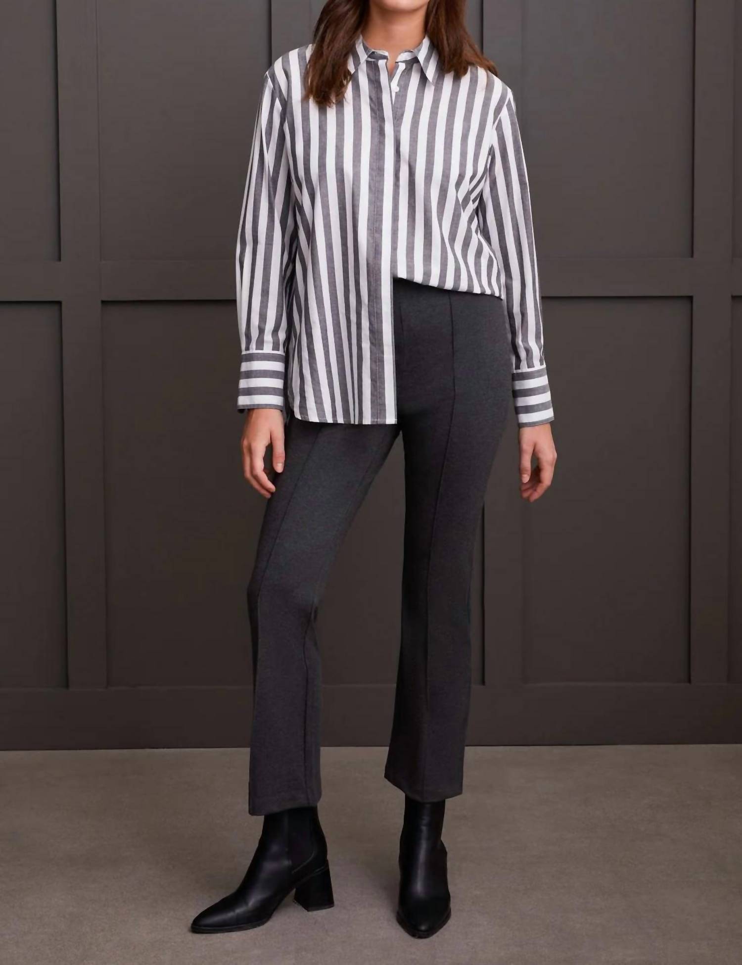 Stay on-trend and showcase your impeccable taste with these adaptable and stylish cropped pants. The perfect length to wear with your favorite mules. You'll love the fit! Introducing the TRIBAL Signature Ponte Pull On Pants, expertly crafted for women in a solid Heather Charcoal color. These slim-fit ankle pants feature a flattering bootcut leg, a high-rise waist, and a convenient pull-on closure with an exposed elastic waistband. Made from a comfortable blend of 69% Rayon, 27% Nylon, and 4% Spandex, these pants include pintuck details on the front and back legs to elongate your figure. Care is simple: machine wash on a normal cycle with cold water and line dry, using a medium iron if needed.