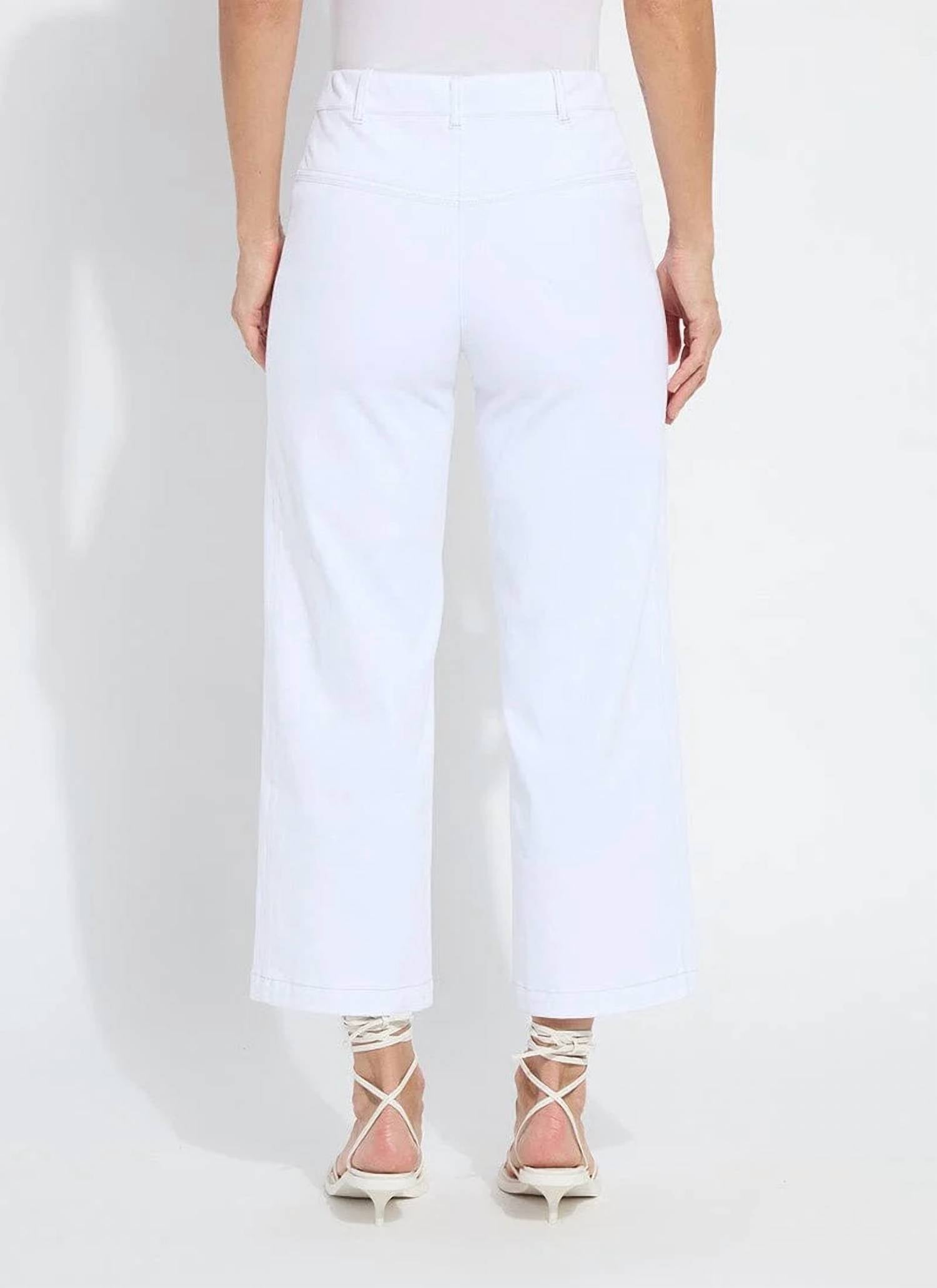 Upgrade your wardrobe with these cropped pants, designed to merge sophistication and wearability. The tailored fit ensures ultimate comfort during long days or nights out. Achieve a chic yet comfortable look with the Layton Wide Leg Crop Pants by Lysse, available in classic white. These high-rise, wide-leg cropped pants are made from 4x-stretch knit denim, boasting a composition of 95% cotton and 5% spandex for flexibility and ease. Designed with a concealed patented 360° smoothing waistband, they feature faux welt side pockets for added style and functionality. Closure is pull-on, and they measure a 26" inseam, perfect for a tailored summer workwear vibe. Care instructions include machine wash and line dry for easy maintenance.