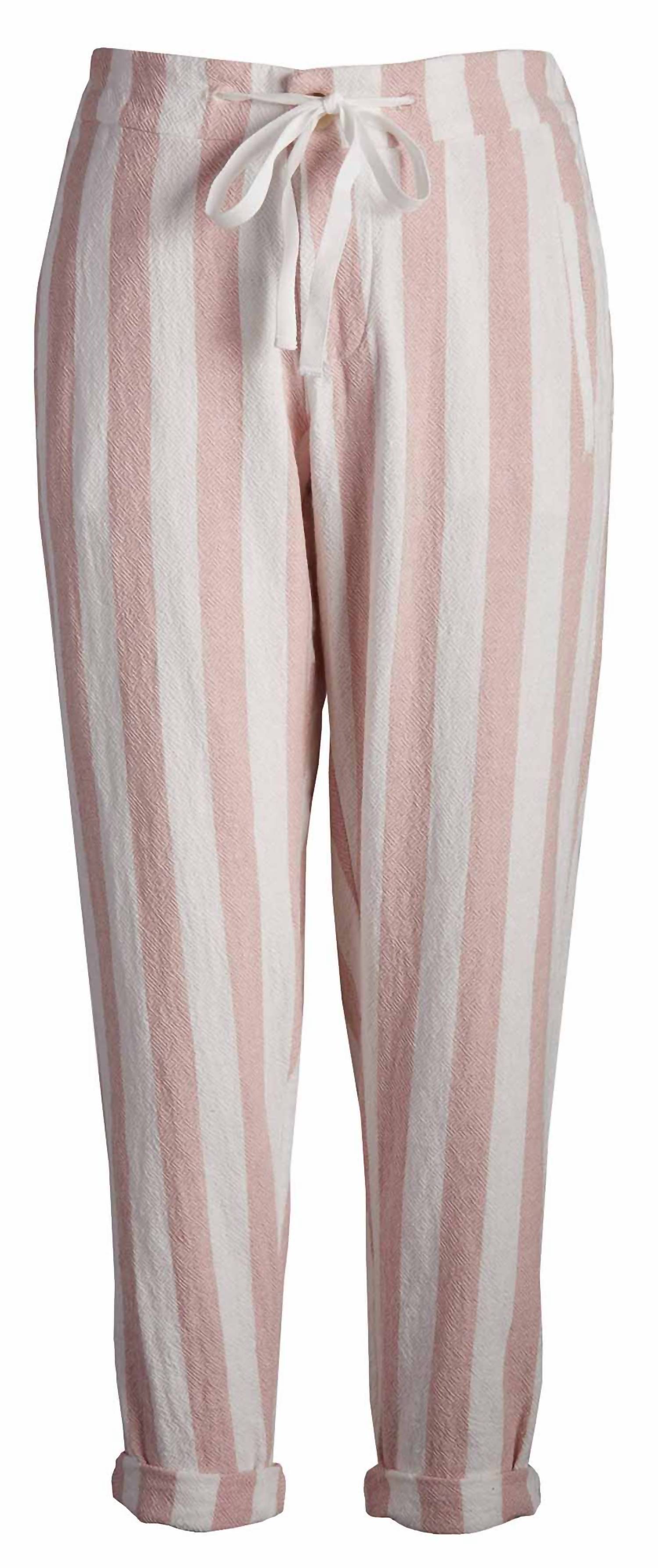 Stay on-trend and showcase your impeccable taste with these adaptable and stylish cropped pants. The perfect length to wear with your favorite mules. You'll love the fit! The Taylor Crop Pant by LVHR brings easygoing California style to your wardrobe with its relaxed fit and versatile design. Crafted from a cotton blend, these pants feature an adjustable drawstring waistband with cotton twill tape, front pockets, and a choice of roll-up hem or straight leg. This pairs effortlessly with any ensemble, while the relaxed cut flatters every body shape and height. Closure: Tie closure. Care: Machine wash. Dimensions include a 28" inseam and waistband adjustment from 14" to 16".