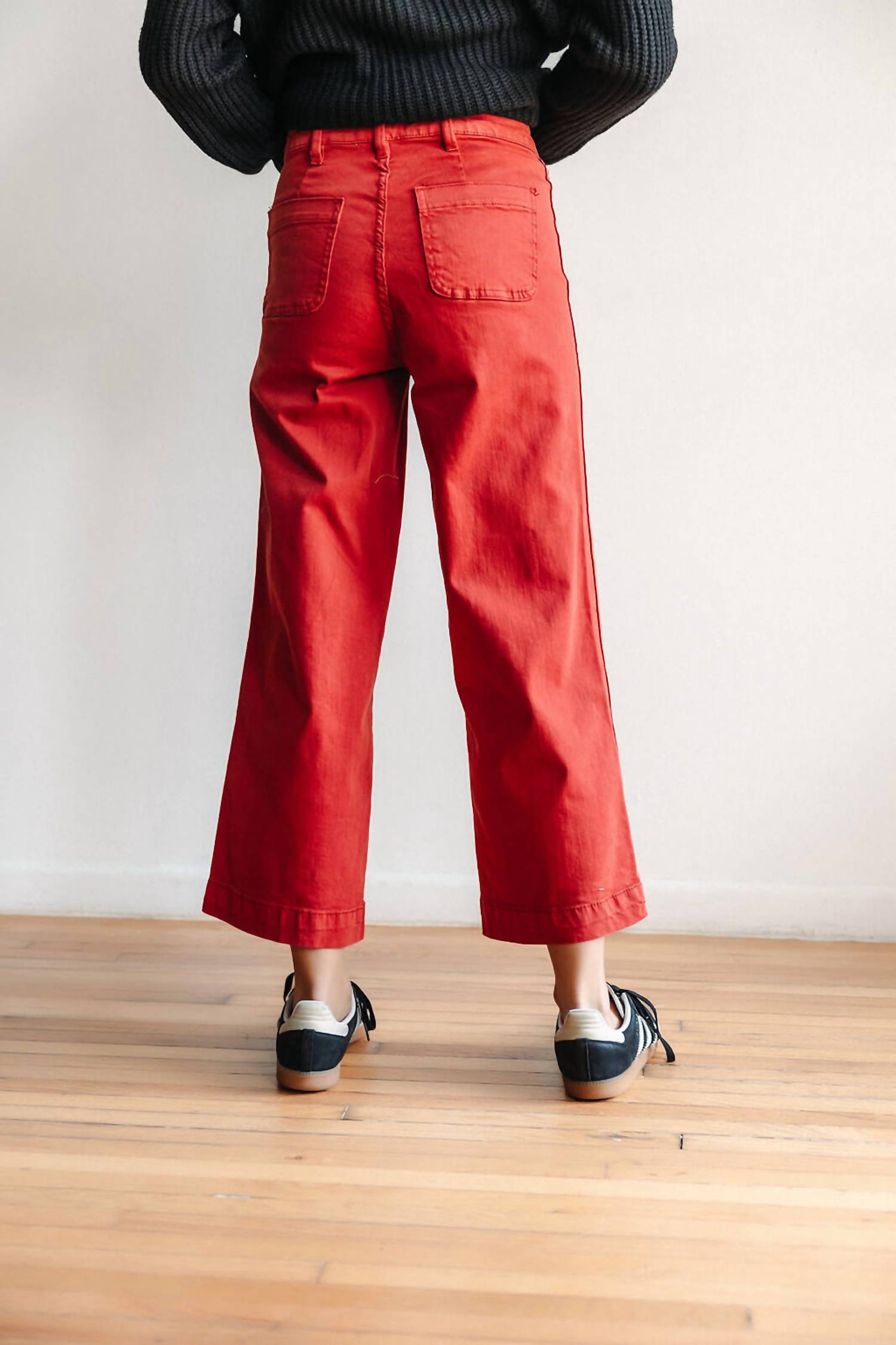 Upgrade your wardrobe with these cropped pants, designed to merge sophistication and wearability. The tailored fit ensures ultimate comfort during long days or nights out. Introducing the High Rise Wide Leg Crop Pants by Oat New York, crafted in an intense hue for a bold statement. These cropped pants feature a sophisticated high-rise waist and wide leg style, made from soft stretch denim for ultimate comfort. The design includes faux pockets and is tailored with a button closure. Care instructions recommend machine wash and tumble dry.