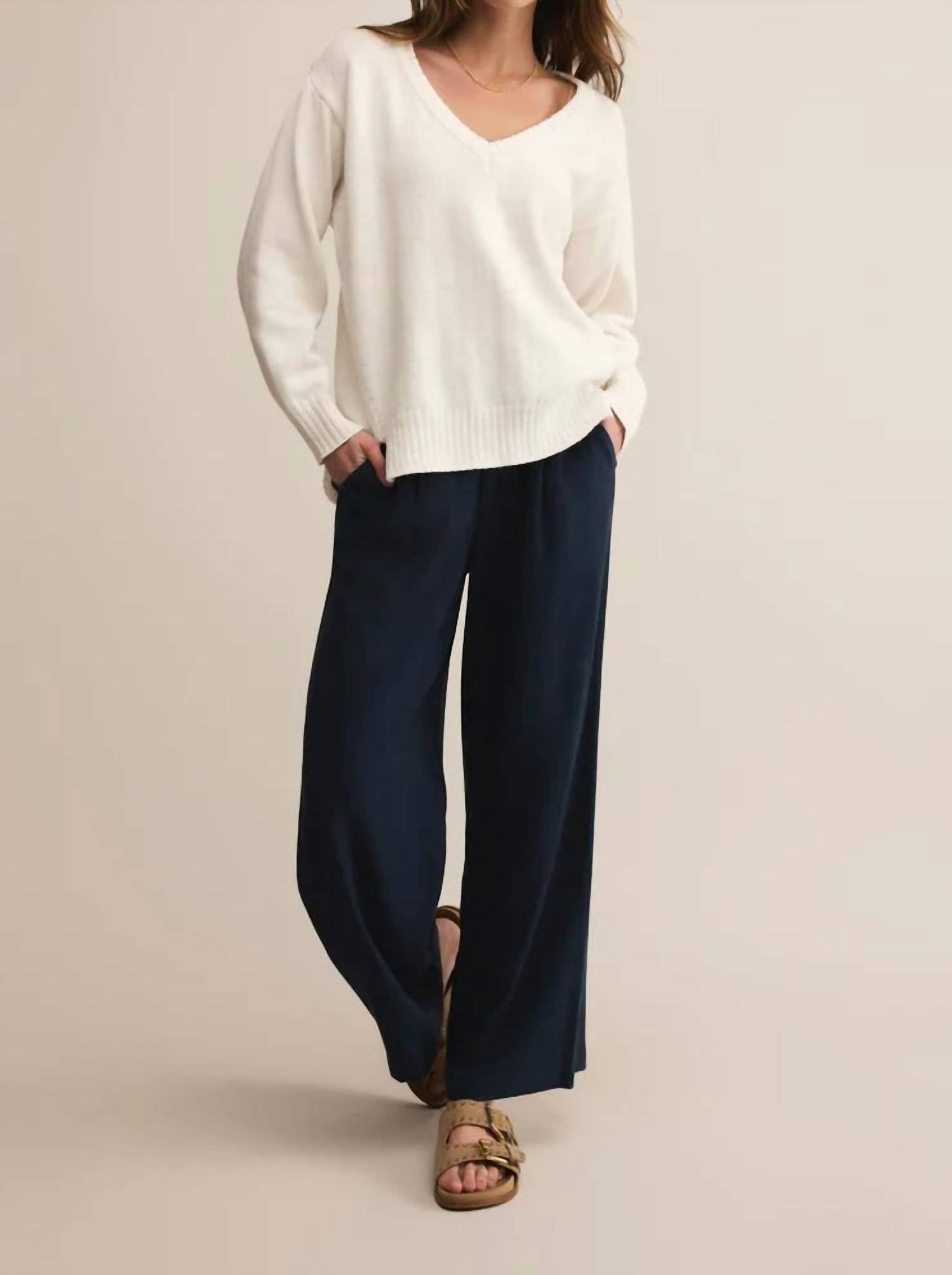 Stay on-trend and showcase your impeccable taste with these adaptable and stylish cropped pants. The perfect length to wear with your favorite mules. You'll love the fit! Enhance any outfit with the Vista Linen Pants in Eclipse by Z Supply, a minimalist and versatile piece perfect for spring. These ankle-length, mid-rise pants are crafted from a textured linen blend (80% Viscose, 20% Linen) and feature a relaxed fit with a straight leg. Closure: Easy zip fly closure with button. Additional style points for side seam pockets, making them ideal for occasions from lounging to holiday parties.