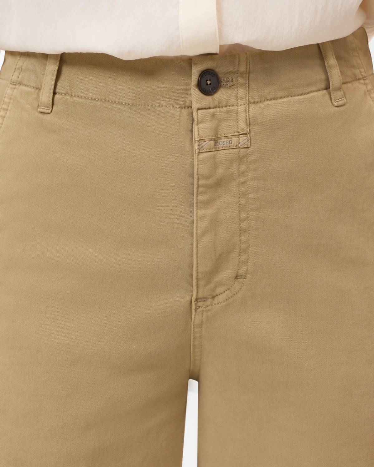 Stay on-trend and showcase your impeccable taste with these adaptable and stylish cropped pants. The perfect length to wear with your favorite mules. You'll love the fit! Experience effortless style with the Rovea Relaxed Pants by CLOSED, crafted from pure cotton in a striking Urban Beige hue. These trousers feature a relaxed fit with a mid-rise waist and a chic cropped, tapered leg for a contemporary look. Their thoughtful design includes a button closure, side slit pockets, workwear-inspired back pockets, and fine stitching details. Care: Machine wash and lay flat to dry for ease and maintenance. Inseam measures 25.5", and the rise is 11.5".