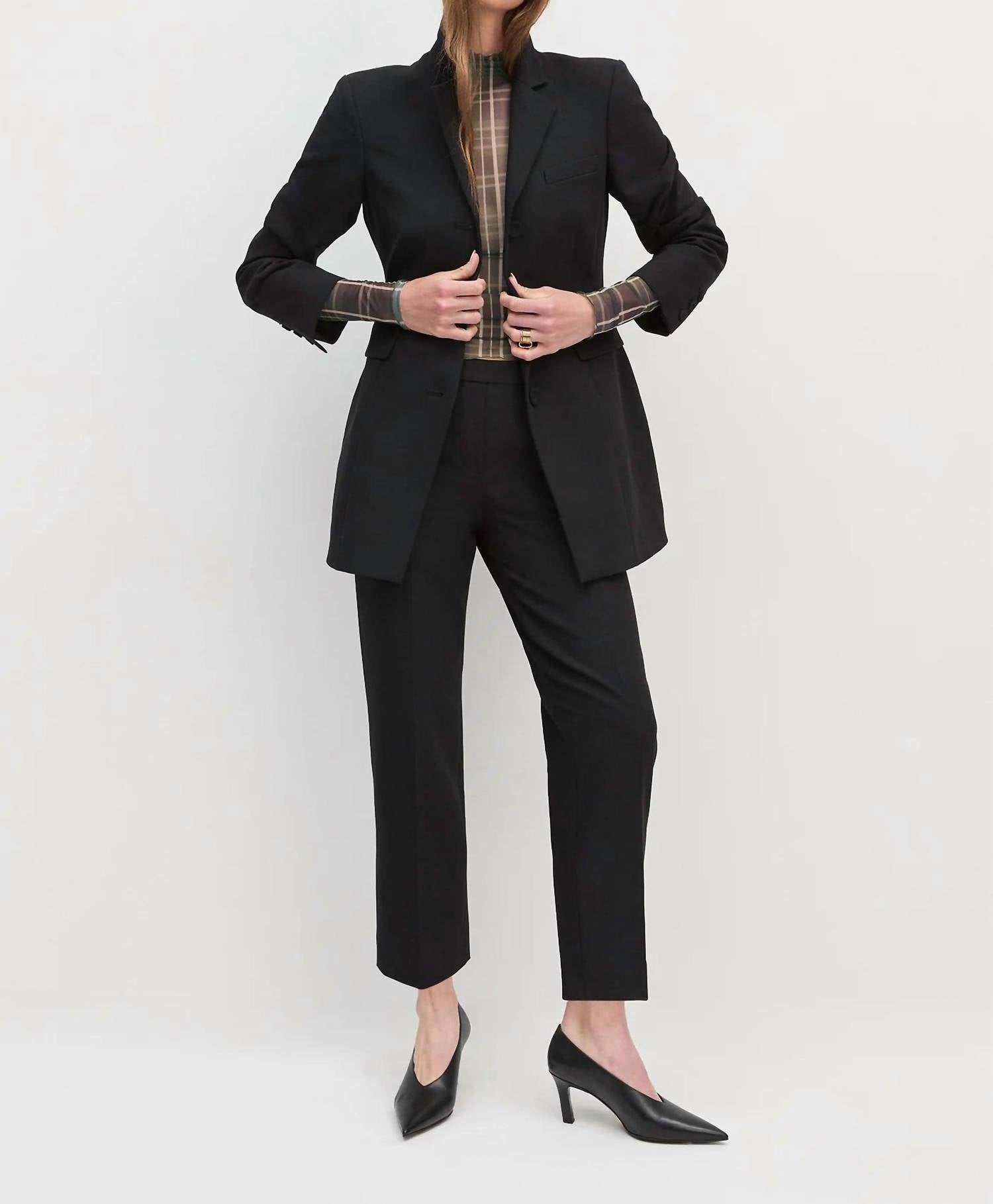 Enhance your wardrobe with this trendy cropped number, designed to blend style and practicality. The comfortable fit allows for easy all-day wear. The perfect length to pair with your favorite mules. Redefine your workwear wardrobe with the Ricki High Rise Pant by Favorite Daughter, an essential crafted from a blend of rayon, polyester, and elastane in timeless black. These tailored trousers boast an 11" high rise and a slim, structured fit, complemented by a straight leg and an ankle-length 26.5" inseam. The slanted pockets offer a functional touch, while the solid pattern enhances a sleek appearance. Care: Dry clean, tumble dry.