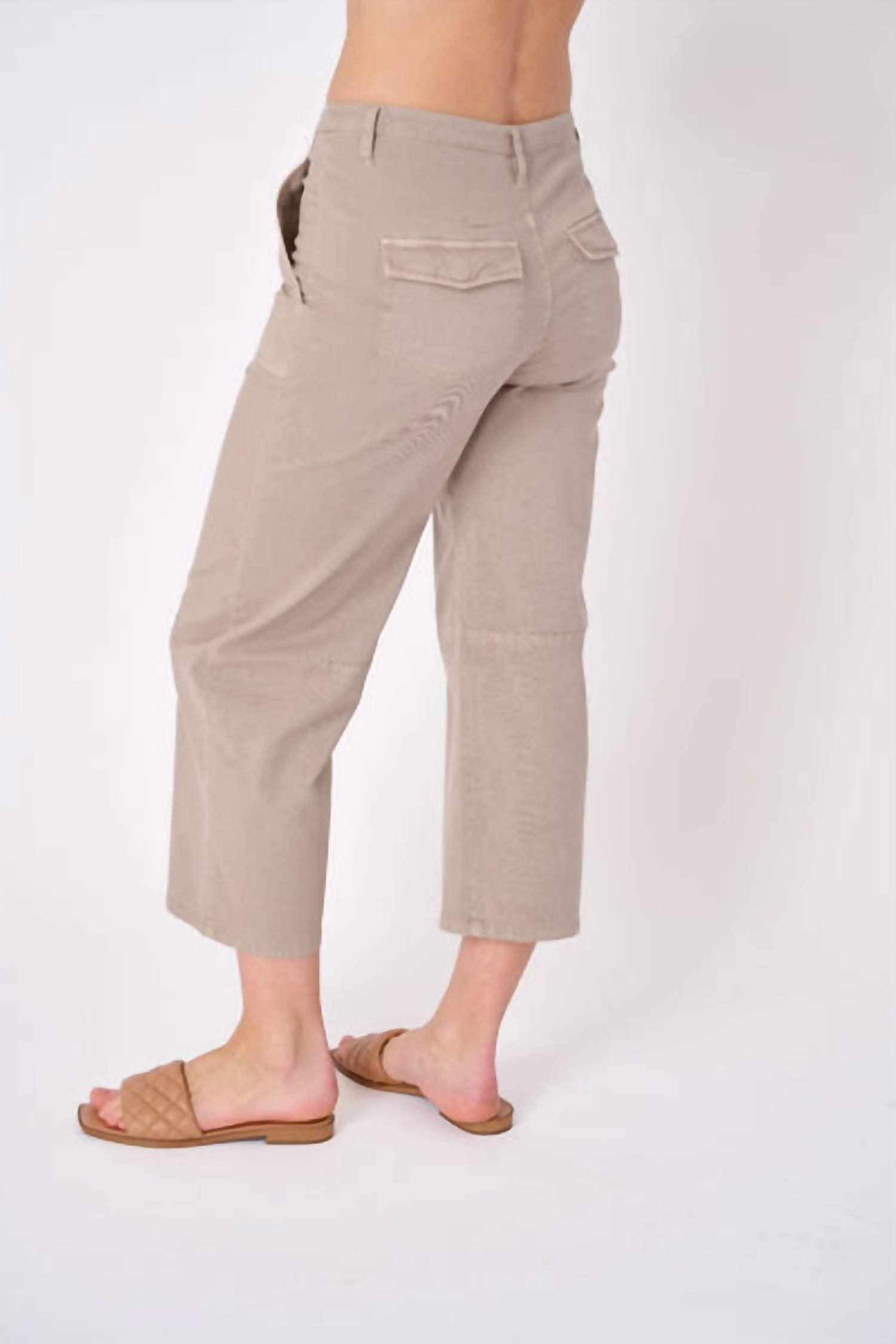 Stay on-trend and showcase your impeccable taste with these adaptable and stylish cropped pants. The perfect length to wear with your favorite mules. You'll love the fit! Revitalize your wardrobe with the Anneheim Crop Barrel Leg Mini Flare Pants by Marrakech, perfect for women who appreciate both comfort and style. These String-colored pants feature a 26-inch inseam, flared leg style, and convenient pockets for everyday practicality. Made of a breathable cotton blend composed of 51% Cotton, 44% Modal, and 5% Spandex, they offer both softness and stretch. Closure: Zip closure. Care: Machine wash and tumble dry, ensuring maintenance is a breeze.