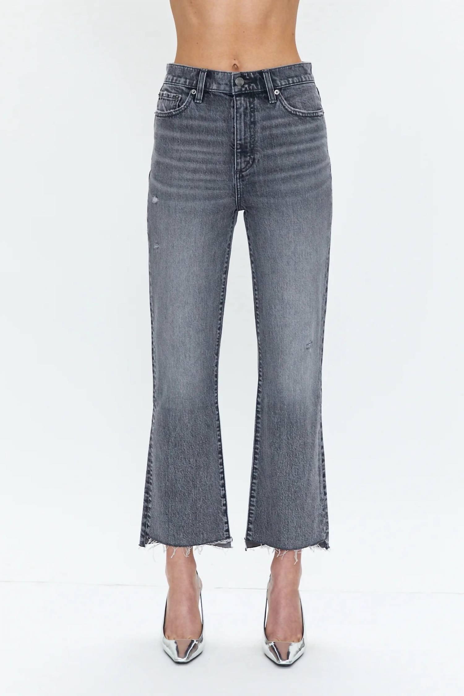 Upgrade your wardrobe with these cropped pants, designed to merge sophistication and wearability. The tailored fit ensures ultimate comfort during long days or nights out. Introducing the Ally High Rise Vintage Ankle Boot Jeans by PISTOLA, a modern interpretation of the classic bootcut with a signature flare at the calves. Crafted from a cozy blend of 56% Cotton, 43% Organic Cotton, and 1% Spandex, these jeans provide both structure and a hint of stretch. Designed in an elegant Earl Grey Vintage solid wash, they feature a button closure and an 11 1/2" rise, 28" inseam, and 17" leg opening. Care for these jeans by washing them in cold water; they're perfect for spring dinner parties. Model is wearing size 26.