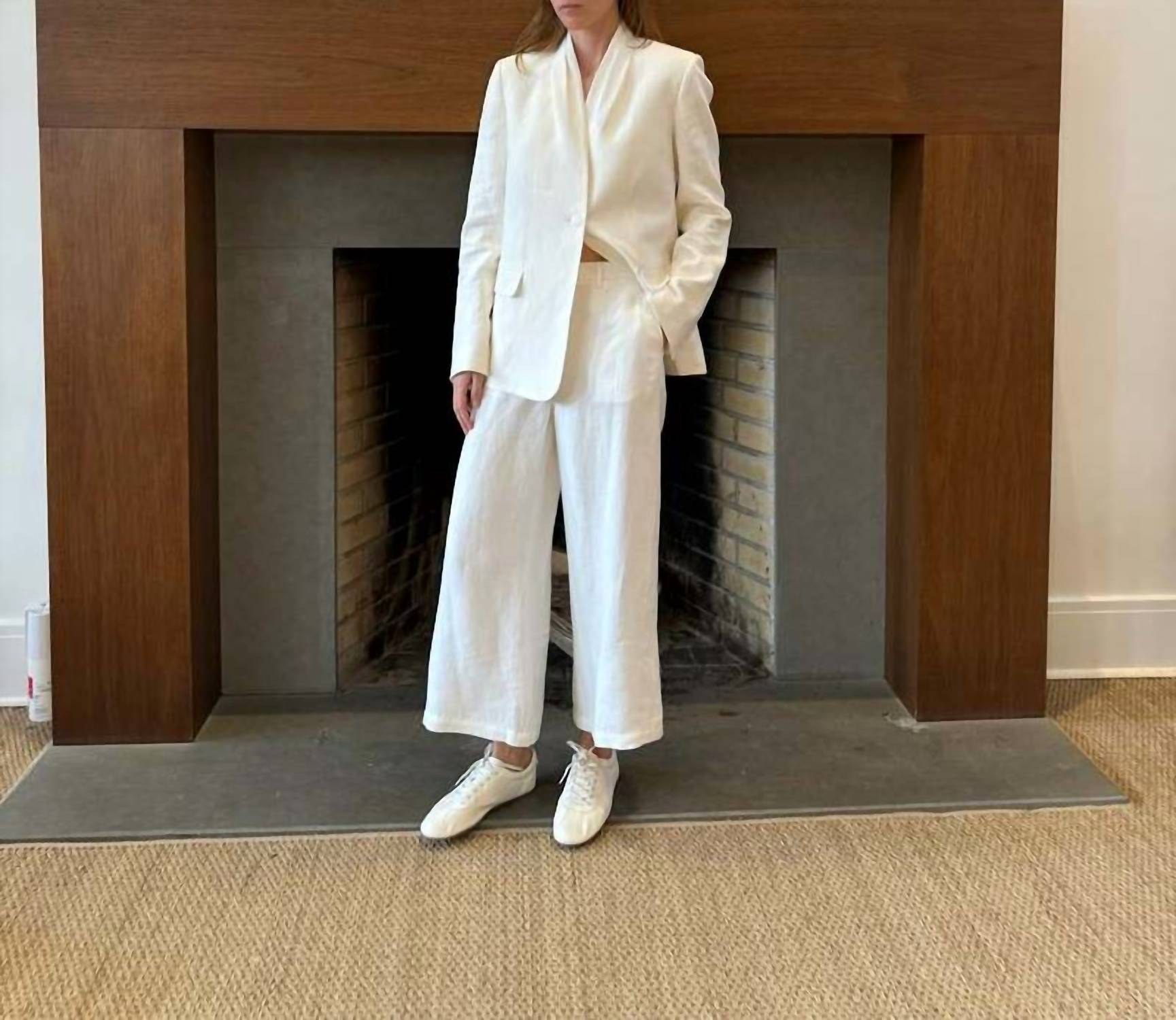 Enhance your wardrobe with this trendy cropped number, designed to blend style and practicality. The comfortable fit allows for easy all-day wear. The perfect length to pair with your favorite mules. The TWP Cropped Howard Pant is your go-to piece for both workwear and travel, offering an effortlessly chic look in textured ivory. Boasting a wide leg and relaxed fit, these mid-rise pants are crafted from 100% linen, providing both comfort and style. Made in the USA, they feature practical side and deep back pockets, belt loops, and a sleek hook and eye closure with a concealed zip-fly. For care, simply dry clean to maintain their refined elegance.