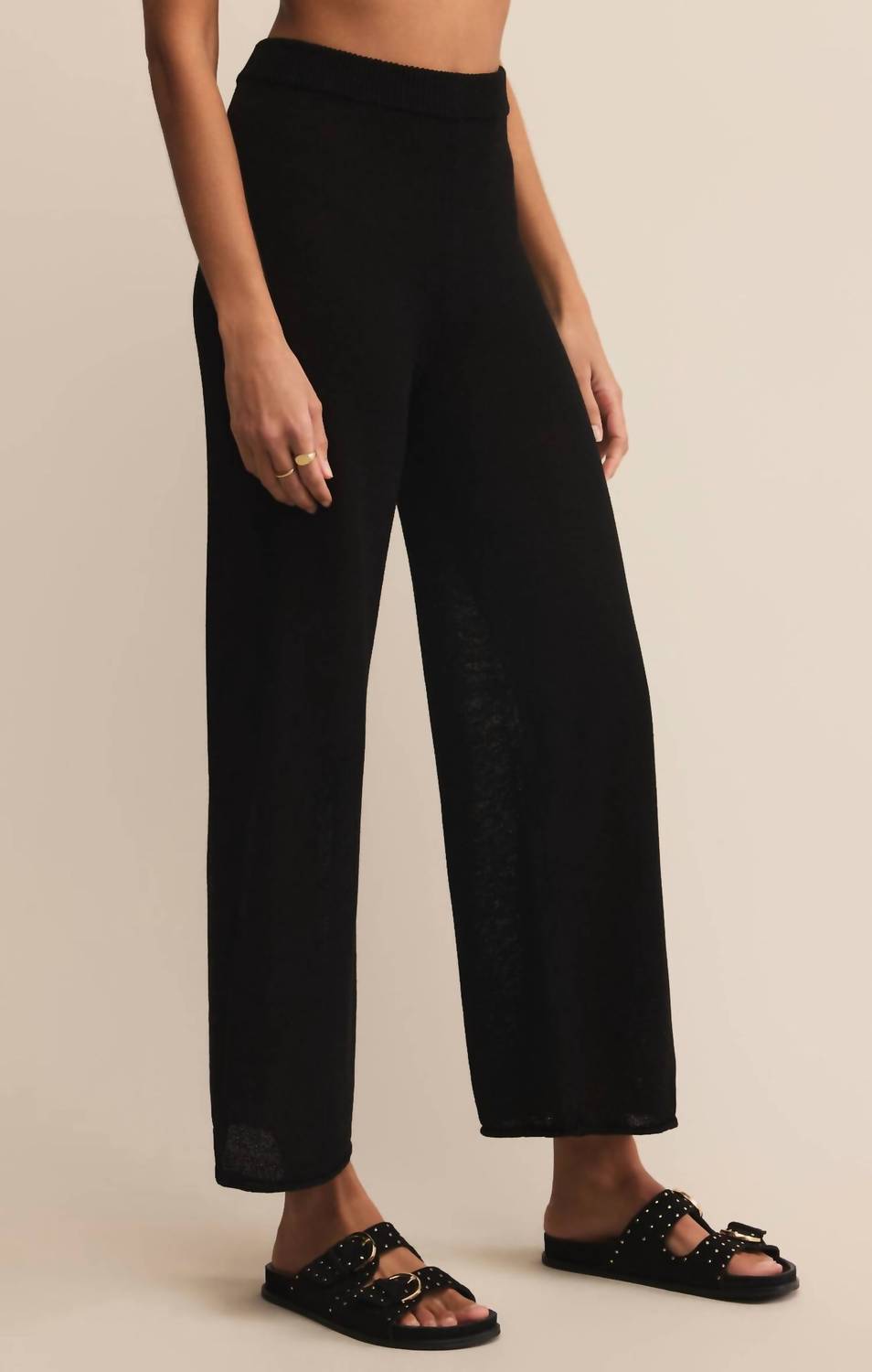 Enhance your wardrobe with this trendy cropped number, designed to blend style and practicality. The comfortable fit allows for easy all-day wear. The perfect length to pair with your favorite mules. Discover ultimate comfort with the Women's Wanderlust Sweater Pant by Z Supply, perfect for a holiday party. Made from a luxurious cotton blend of 52% cotton and 48% viscose, these pants feature a high-rise waist and a sleek straight-leg silhouette. With a 26.5-inch inseam, these solid black pants promise a chic Scandi Style touch to your summer wardrobe. Embrace effortless style with their pull-on closure, and keep them looking fresh with hand washing.