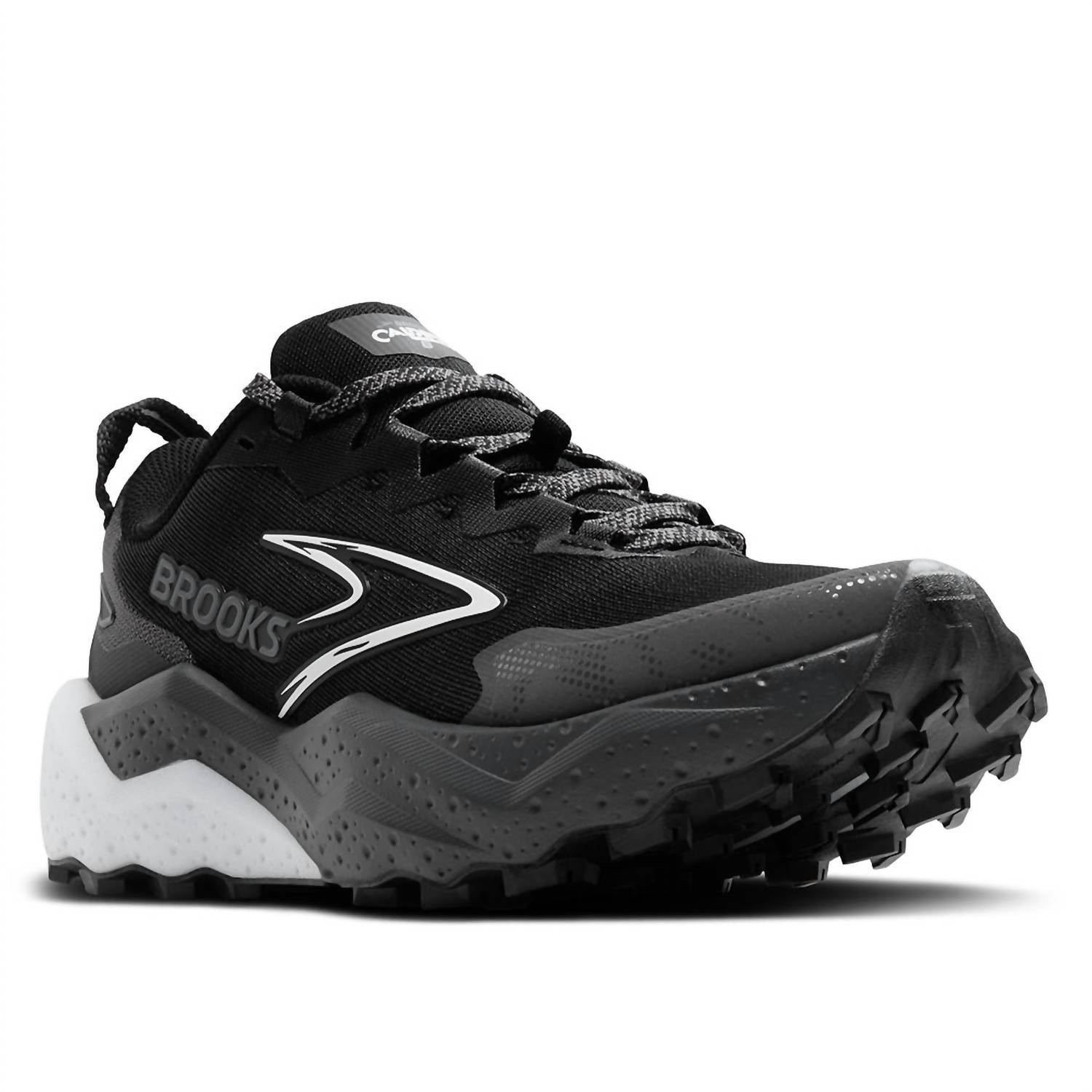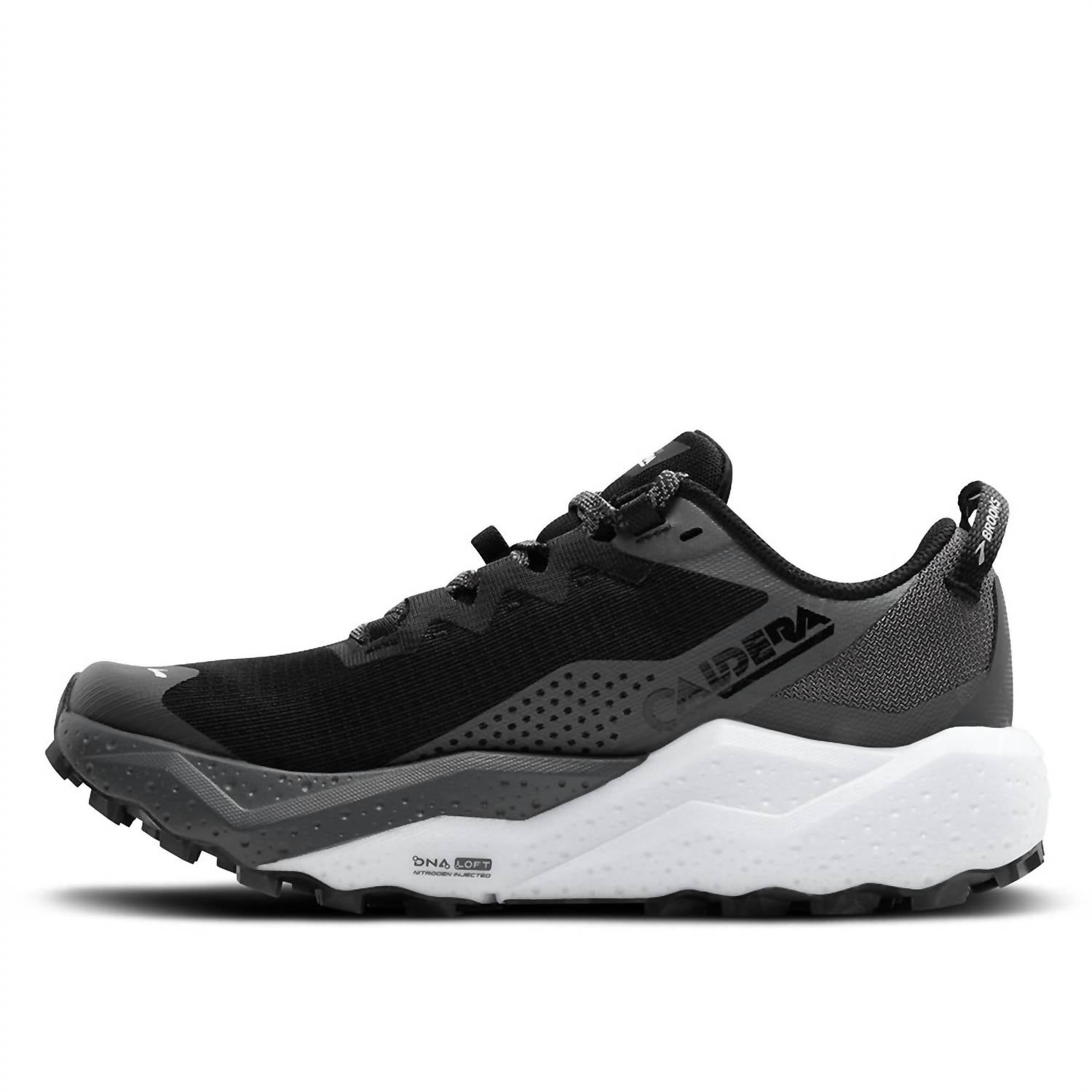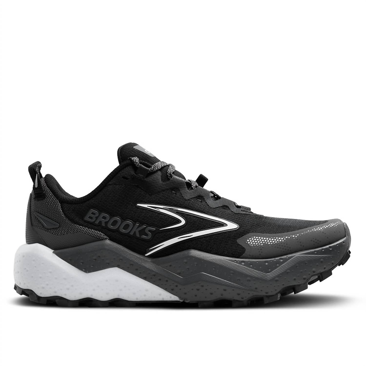 Workout in style with these adorable athletic sneakers. Discover the Men's Caldera 8 Trail Running Shoes by BROOKS, engineered for ultimate cushioned comfort on any trail. Designed with a round toe and flat heel, these shoes ensure a smooth, adaptable stride perfect for long-distance runs. Available in a sleek Black/blackened Pearl/white colorway, these shoes blend functionality and style seamlessly—ideal for fitness enthusiasts embracing the athleisure trend this spring. Perfect for workout sessions or even a 4th of July outing, this design caters to the adult male athlete.