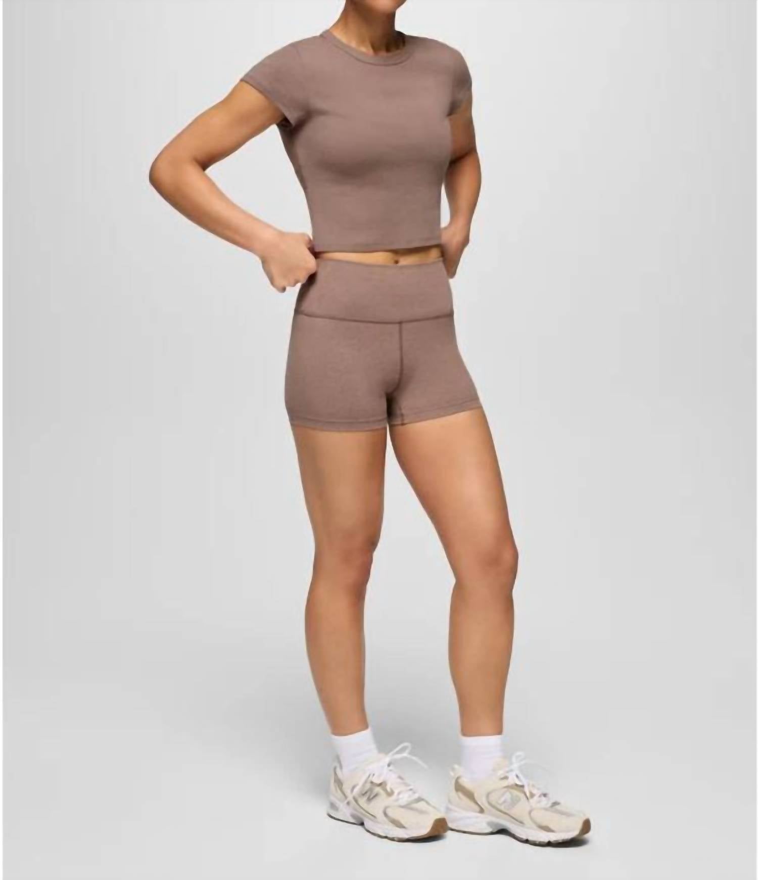 Stylish and comfortable, these athletic shorts will never go out of style. Elevate your activewear with the Women's Heavana Short by prAna, crafted in a Carob Heather hue for a sophisticated athletic look. These high-rise athletic shorts feature a pull-on closure and a 2.5-inch inseam, with a wide waistband that ensures a secure fit during movement. Made from 87% Recycled Polyester and 13% Elastane, the shorts offer moisture-wicking and UPF 50+ properties, ensuring comfort and protection. Care instructions include machine washing, making them a practical choice for those on the go.