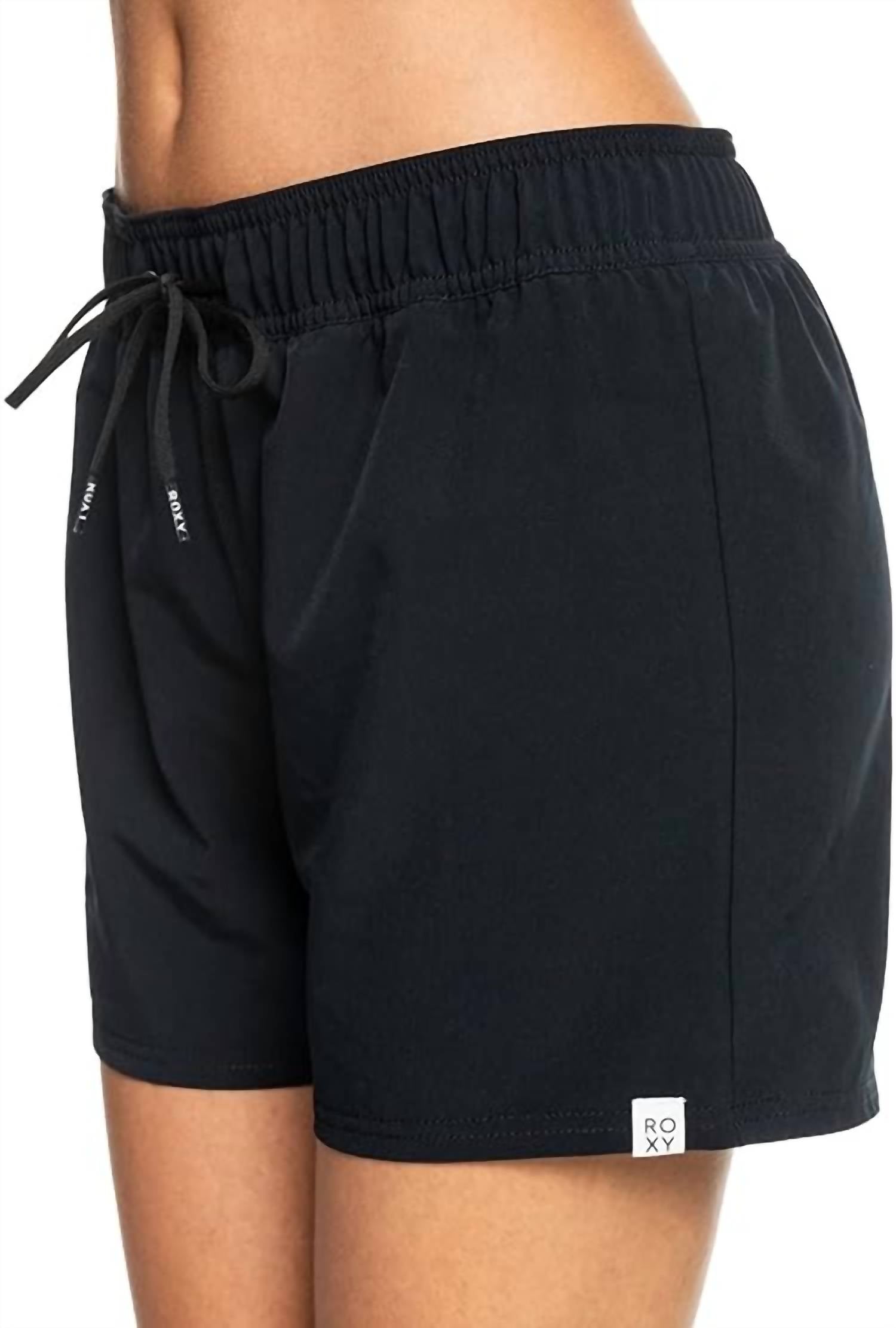 light weight and beyond comfortable, these athletic shorts are perfect for those warm weather days. Introducing the Sea Solid Boardshort by ROXY, the perfect choice for a stylish beach day. These women's athletic shorts are crafted from durable polyester, offering a sleek and solid black design. The board shorts feature a secure tie closure for a customizable fit, ensuring comfort and ease of wear. Ideal for summer adventures, these shorts are designed without pockets for a streamlined silhouette.