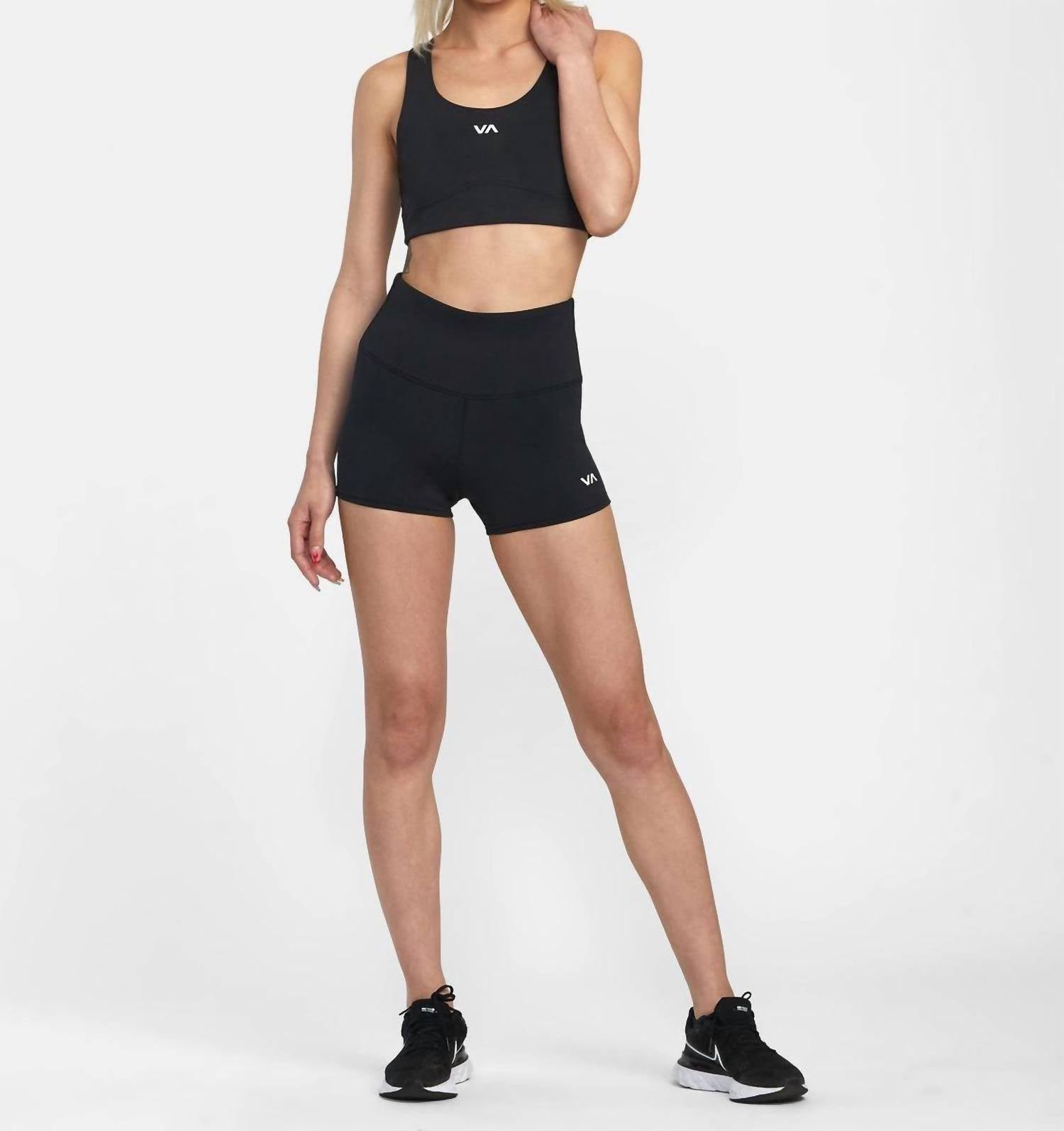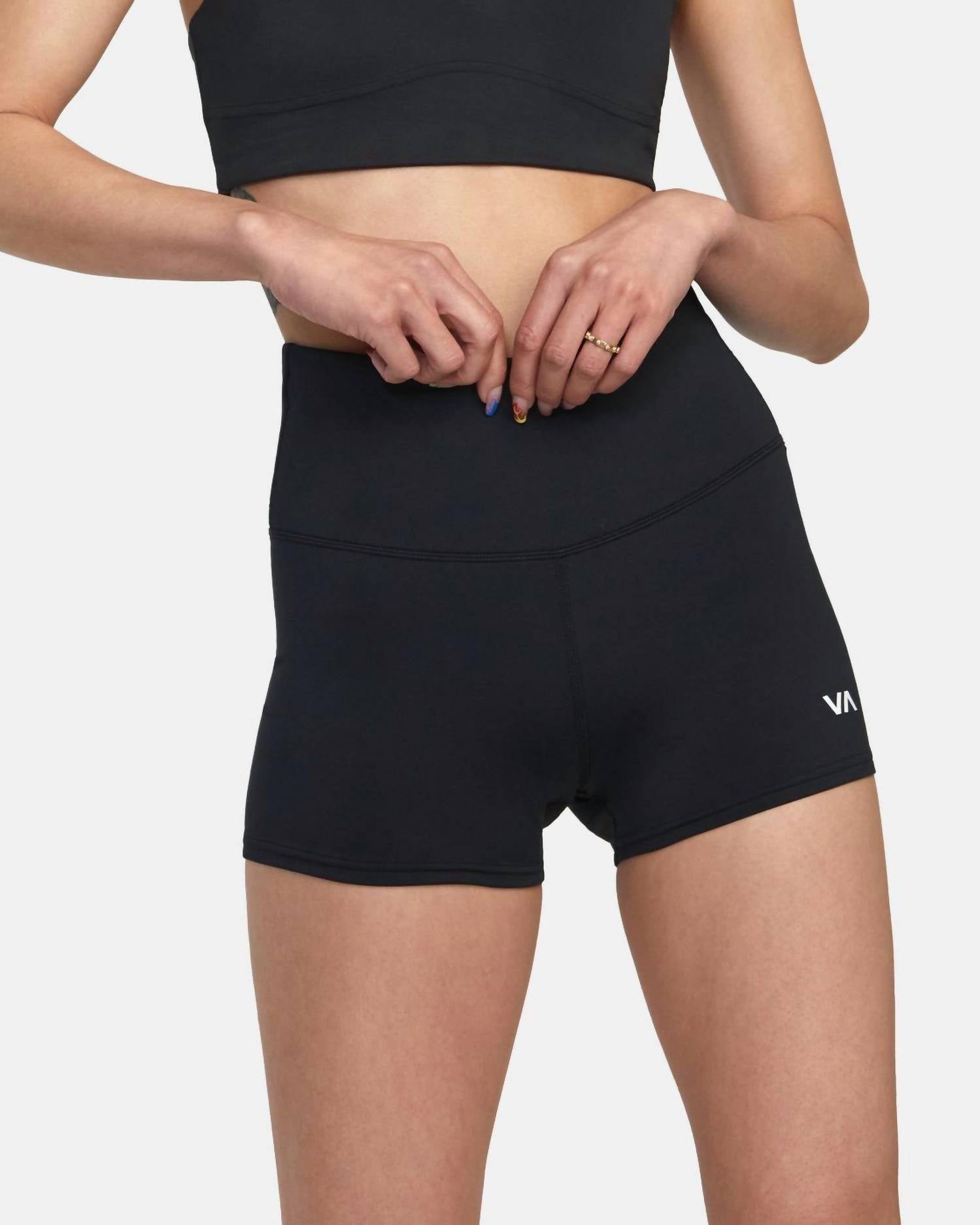Athletic shorts that work for the gym or running errands! Introducing the VA Sport Shorty Shorts by RVCA, designed for women who thrive on active living. These high-waisted workout shorts are crafted from an 80% recycled polyester and 20% elastane stretch blend, providing form-fitting comfort with moisture-wicking technology for quick-drying convenience. Featuring a VA graphic at the front bottom right, these pull-on shorts reflect commitment to sustainability. Care instructions allow for machine washing. Perfect for your athletic endeavors, they combine style and functionality effortlessly.