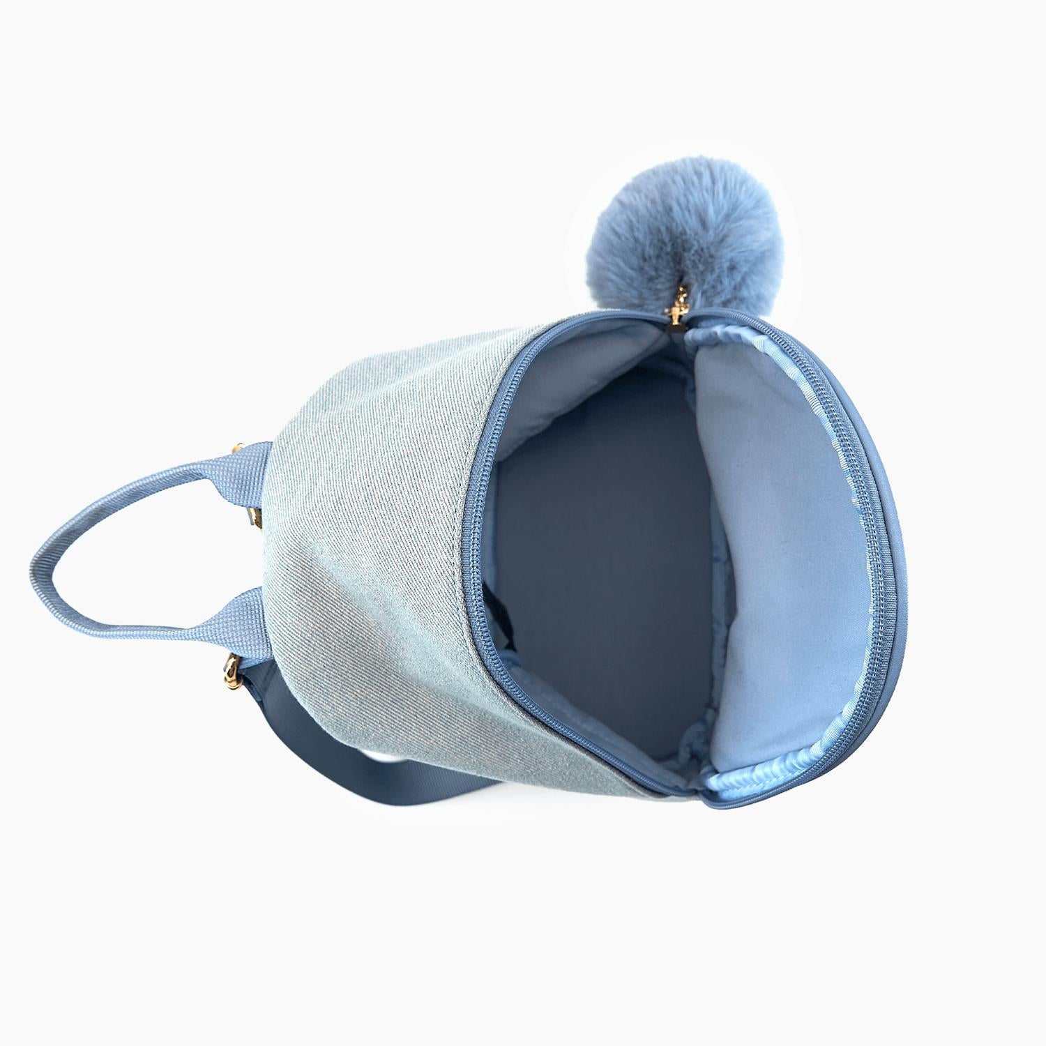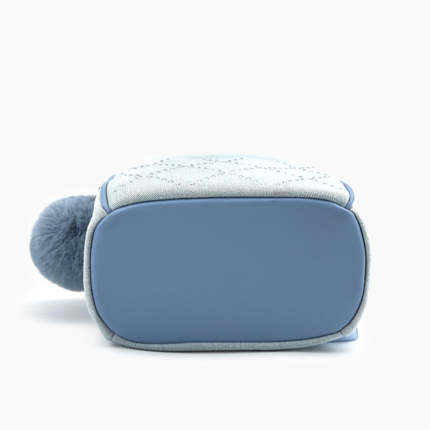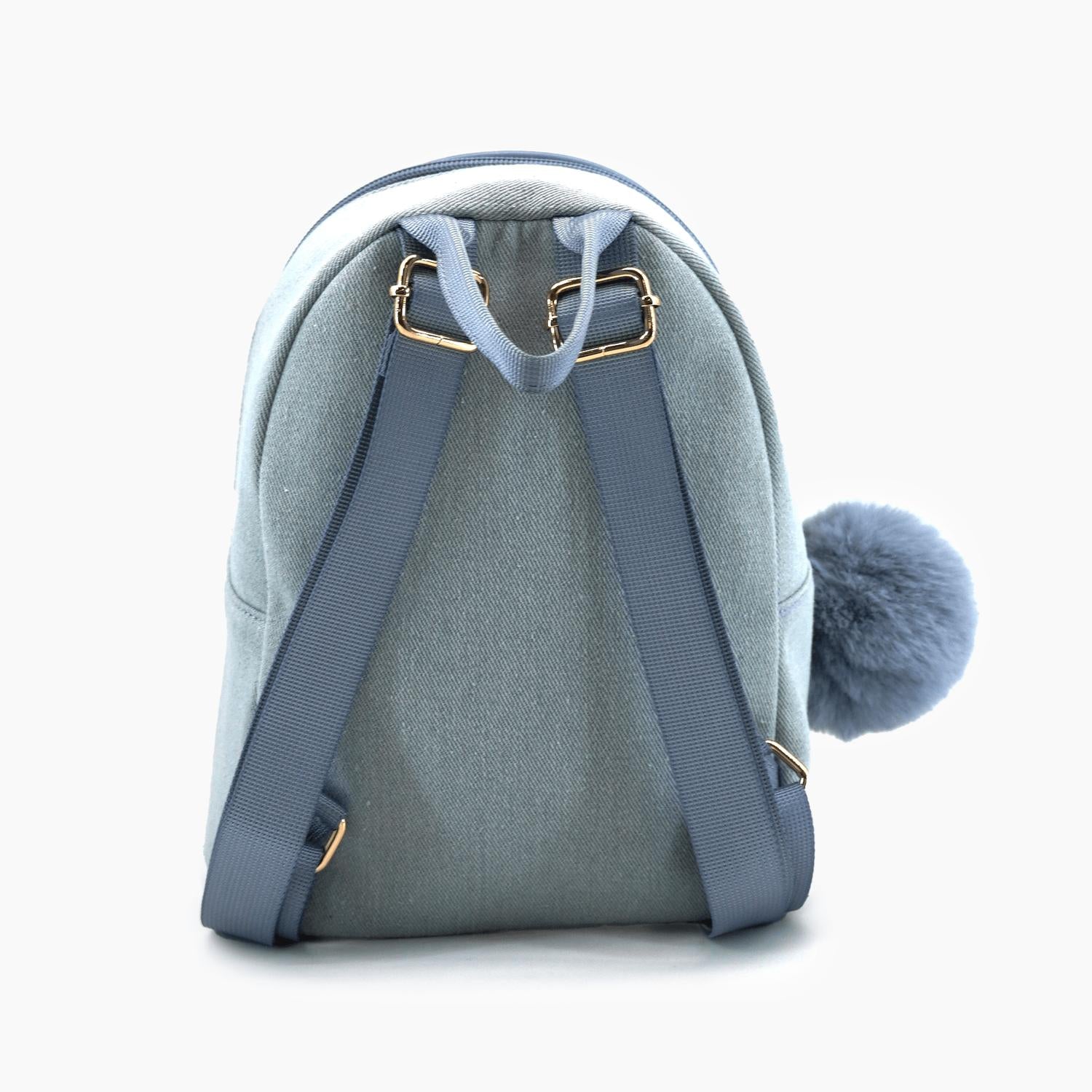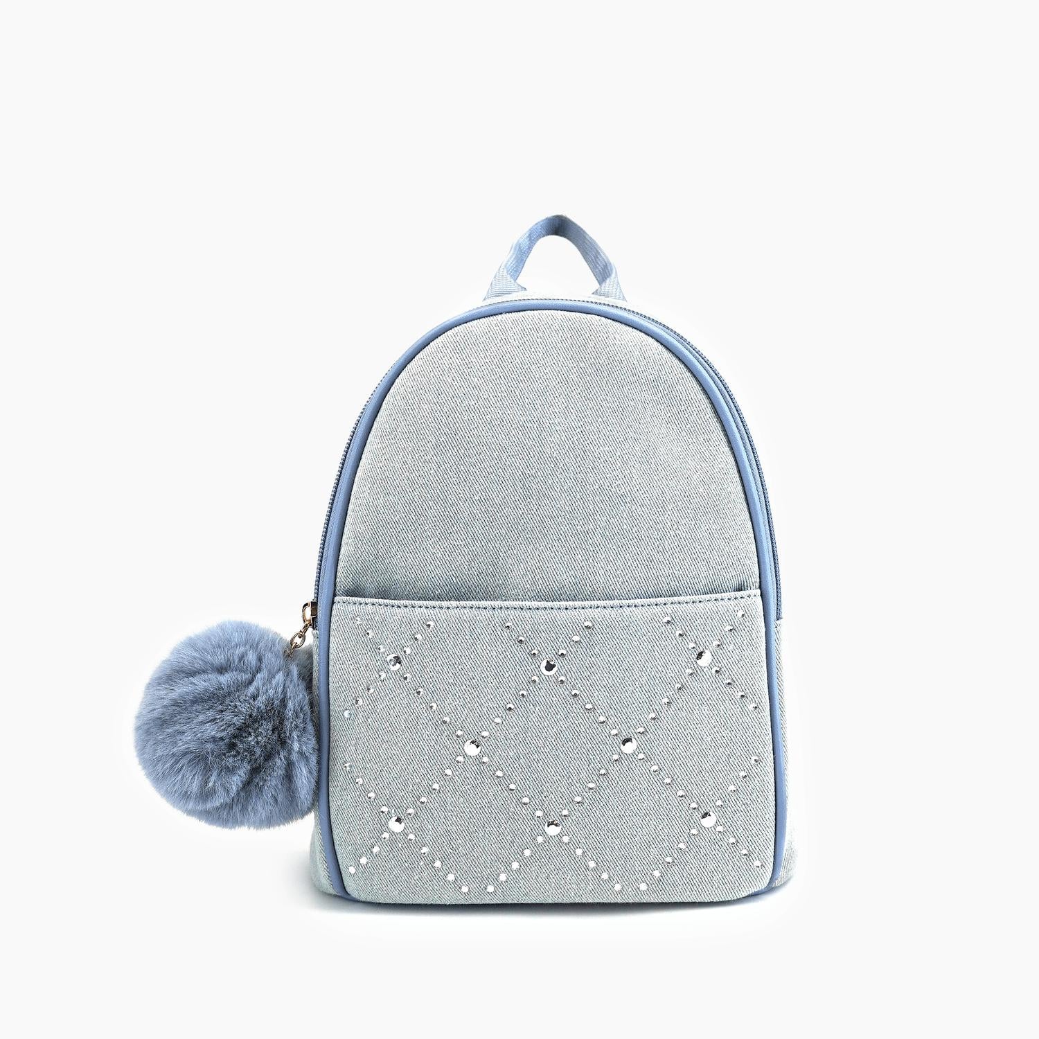 The perfect size backpack that fits everything you need! Elevate your everyday style with the Women's Kingston Denim Rhinestone Mini Backpack by Like Dreams. Crafted from light denim, this compact and lightweight bag features elegant rhinestone detailing and a playful faux fur pom-pom on the zipper. With dimensions of 8"W x 10"H x 4 1/2"D, it boasts a zipper closure and a practical outer slit pocket for easy access. The top handle measures 3 1/2'', and it includes a 13'' adjustable strap to suit your comfort needs, weighing in at just 11.99 oz.