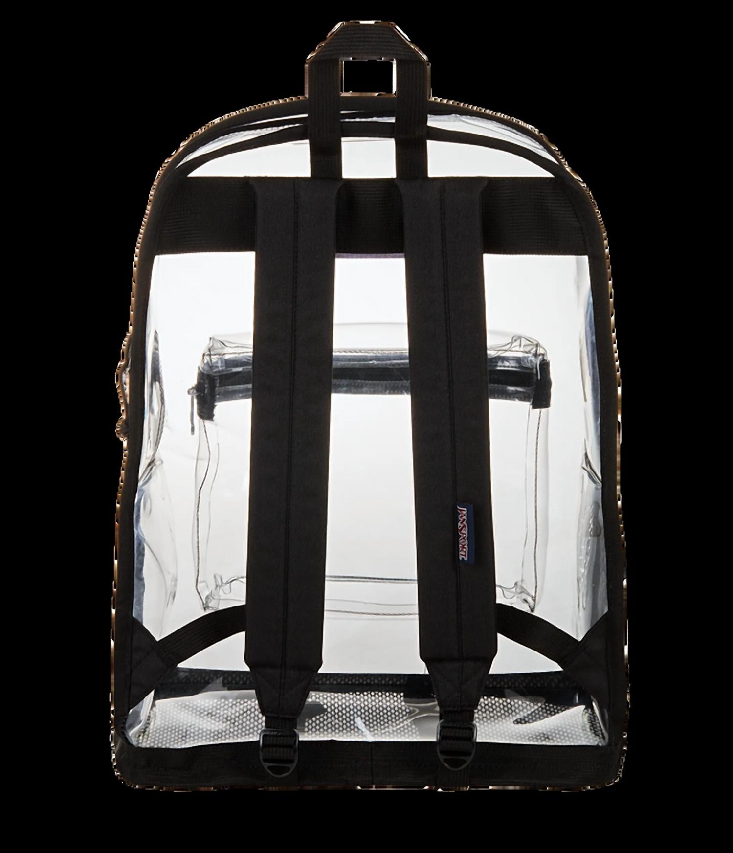 Not only functional, this backpack is stylish and fits everything you need in one place. It's a win-win! Introducing the Unisex Clear Back Pack by Jansport, a practical and stylish choice for any occasion. With a generous height of 17.3 inches, width of 12.2 inches, and depth of 5.5 inches, this clear-colored backpack provides ample space for your essentials and complies with security requirements at venues. It is perfect for showcasing your personal style while offering easy visibility of your belongings. This versatile backpack defines functionality and modern design.