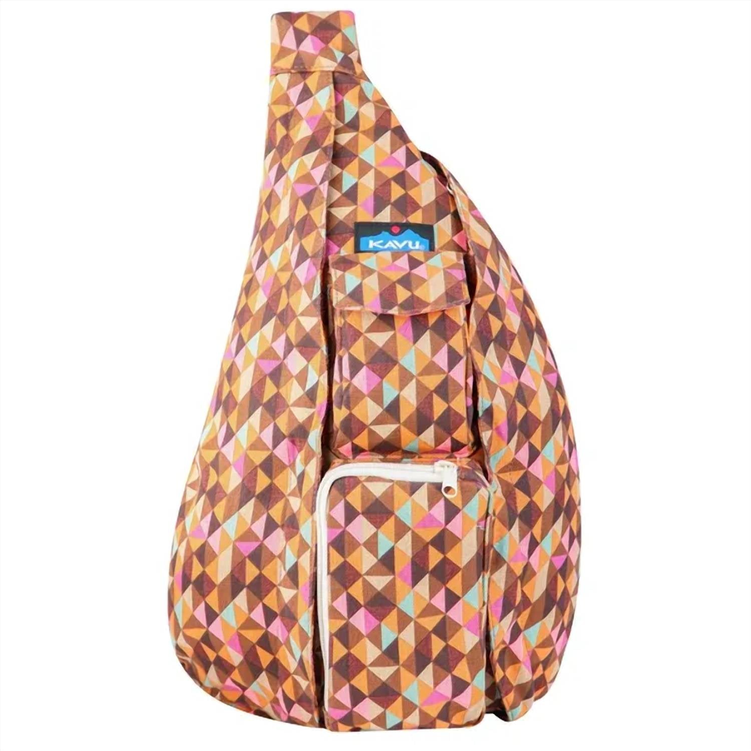 A backpack so versatile, you'll want to carry this with you everywhere. Introducing the Rope Bag by KAVU, a staple that embodies both style and practicality. This sling is crafted from durable 12oz 100% cotton canvas in a unique Jumble Dash color, featuring an adjustable rope shoulder strap for crossbody wear, ranging from 22" to 44". It comes equipped with two vertical zip compartments and two pockets for keys or cell phones, with dimensions of 20" x 11" x 5" providing ample storage. At just 0.8 lbs, this lightweight bag ensures comfort while the padded back with KAVU embroidery adds a touch of signature style.