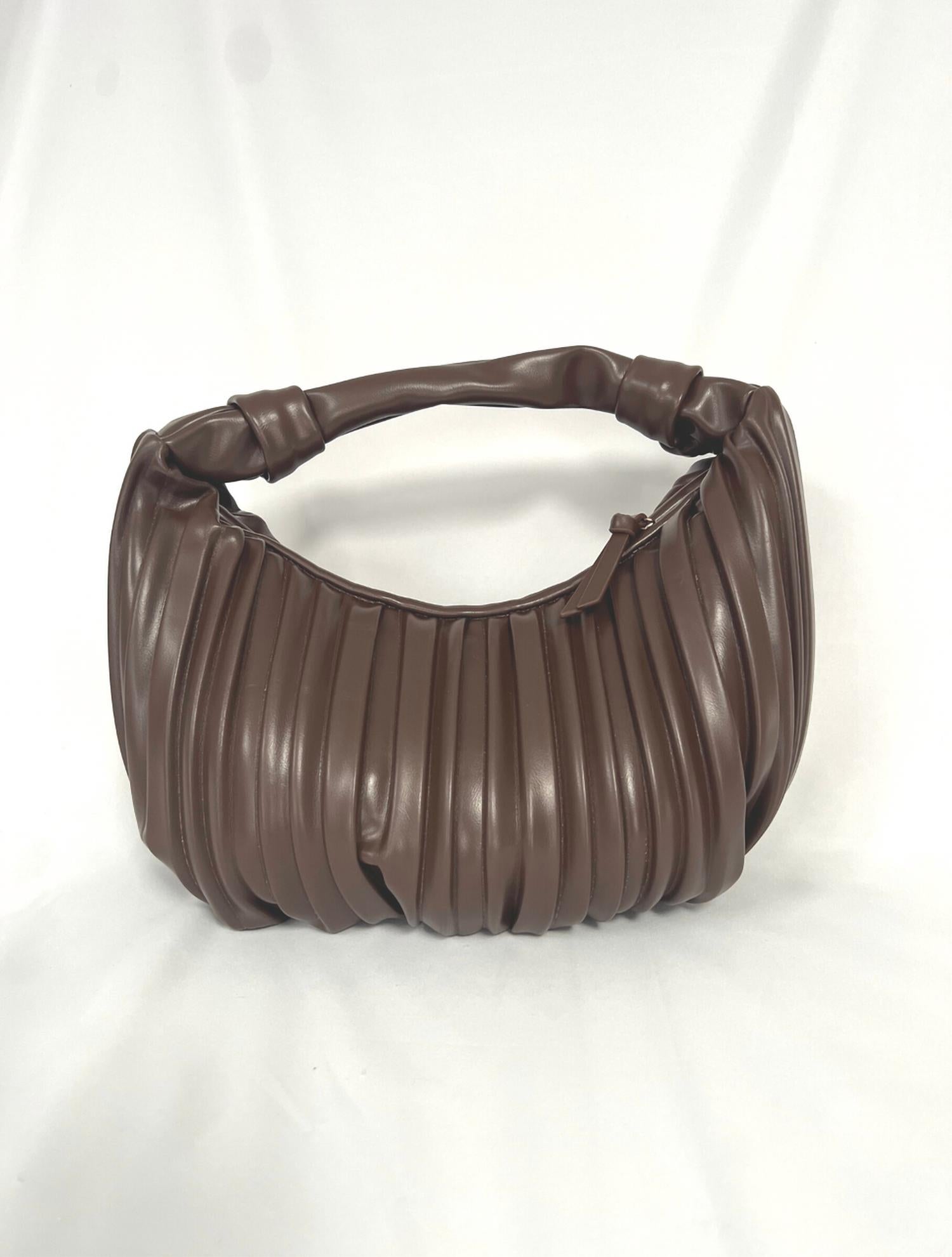 Elevate your look with this stylish scrunched handbag, perfect for those who appreciate minimalist fashion with a modern twist. Featuring a soft, textured design and a sleek gathered handle, it offers a refined yet trendy aesthetic. The compact shape provides just the right amount of space for your essentials, making it a versatile choice that pairs effortlessly with both casual and dressy outfits.