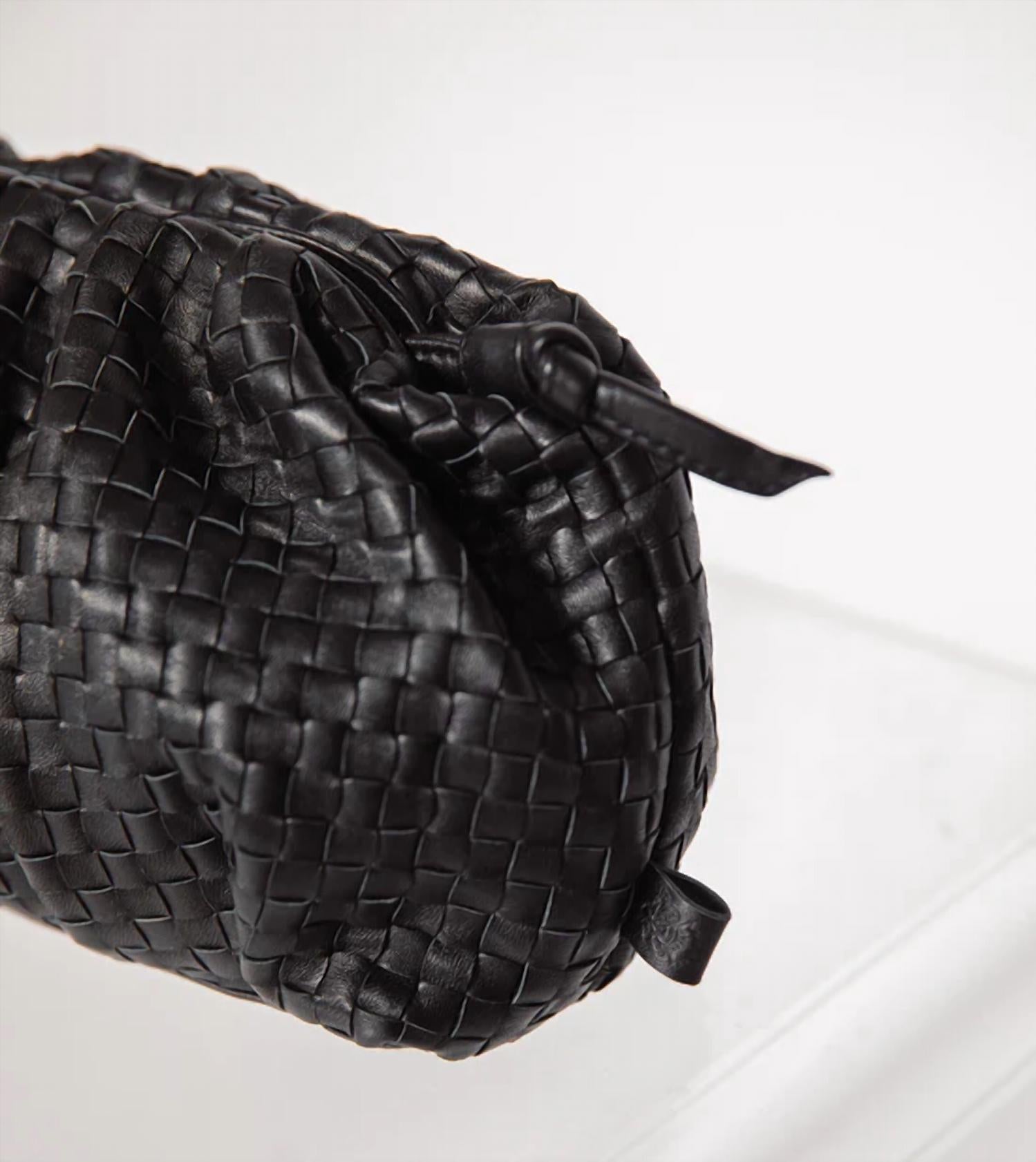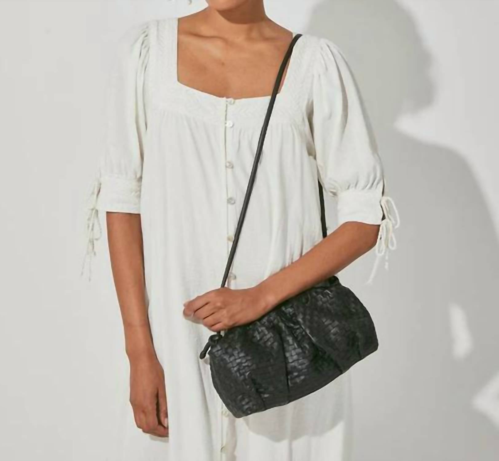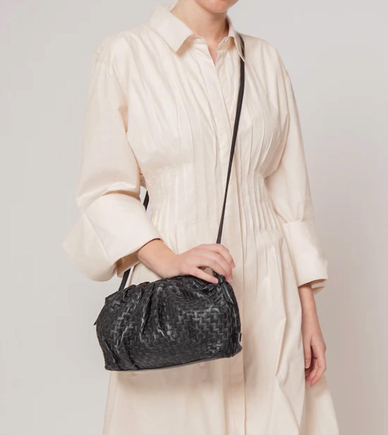 This crossbody bag will be your go-to bag of the season. Discover the Gigi Woven Crossbody Bag by Cleobella, a chic and functional accessory in elegant black. Made from premium leather, this bag is designed for versatile styling, effortlessly complementing any outfit. With a compact width of 7 inches and a height of 3 inches, it's ideally sized for daily essentials. Enjoy the practicality and style that this Cleobella creation brings to your wardrobe, perfect for the holiday season.