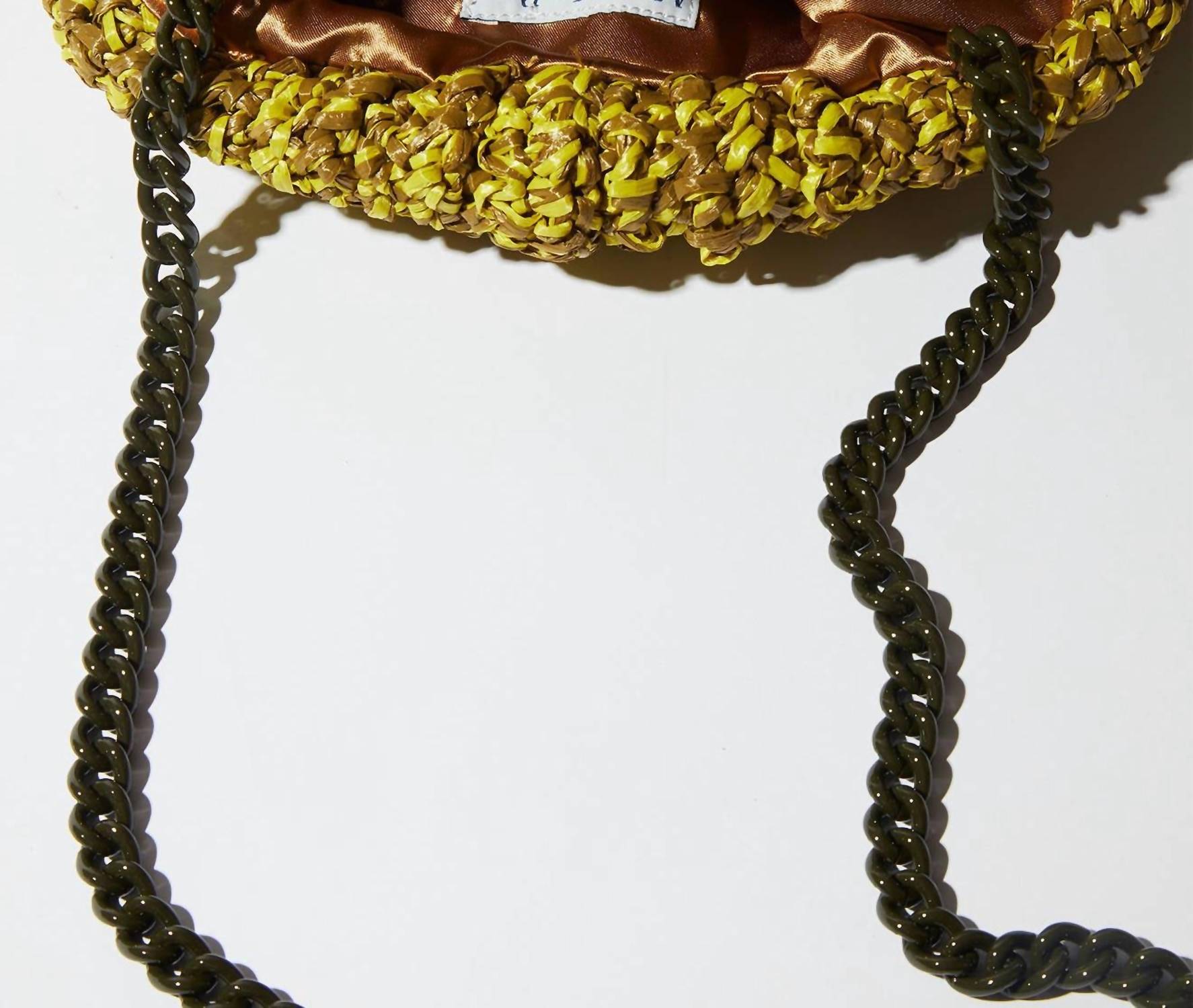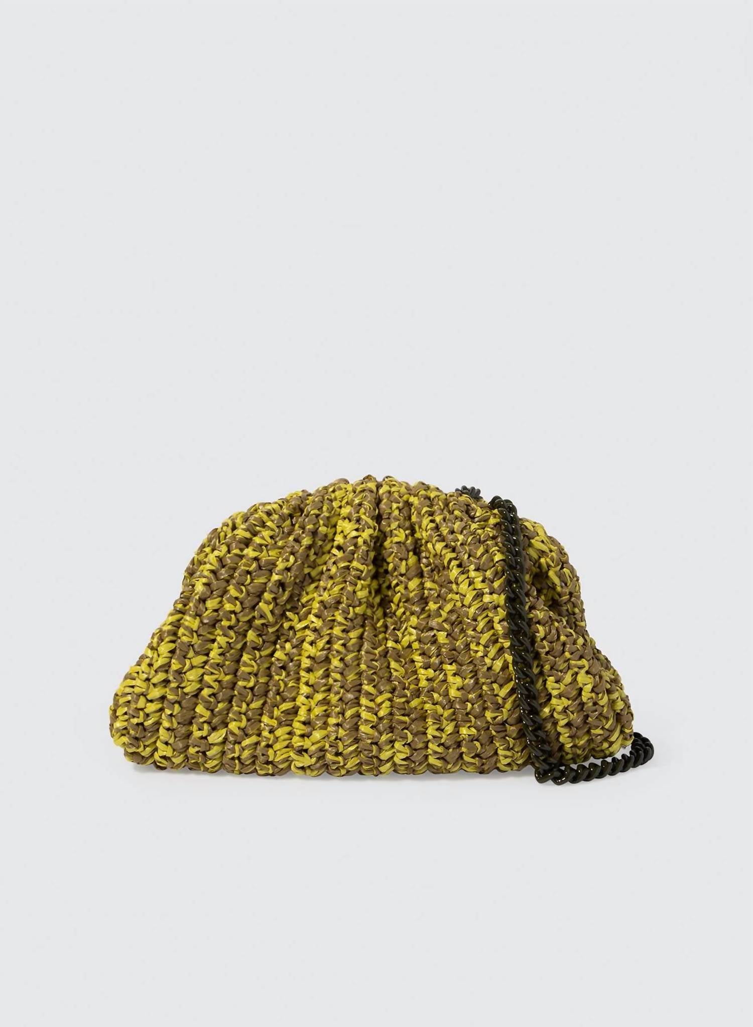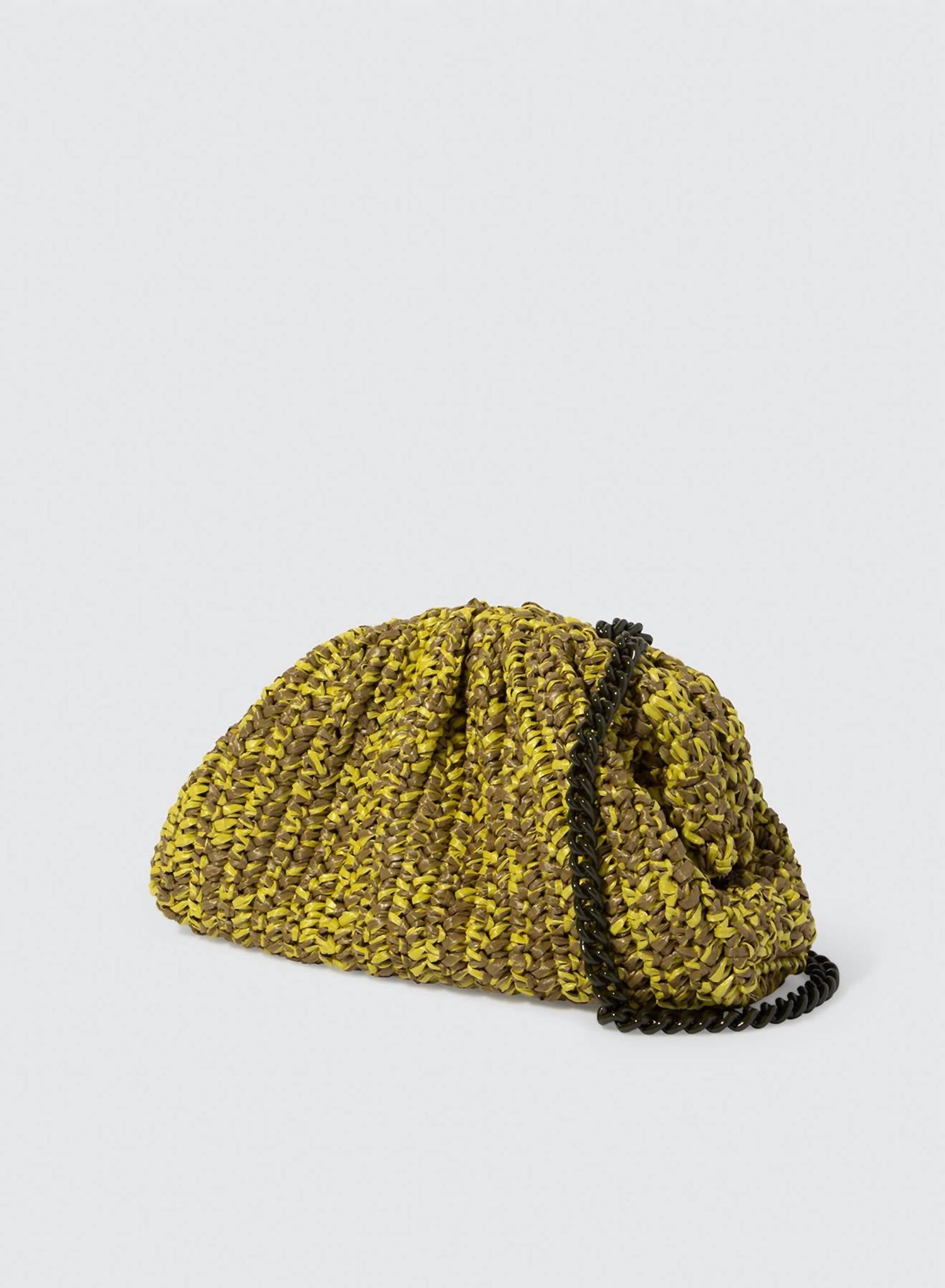 Lipstick, check. Mints, check. Credit card, check. The cutest little bag that holds all of your necessities. Introducing the Women's Melange Game Crochet Clutch by Maria La Rosa, a medium-sized women's clutch in a vibrant lime color. Crafted entirely by hand using the crochet technique, it’s made from 100% viscose raffia with a luxurious viscose satin lining. The clutch boasts a 1-meter tone-on-tone aluminum chain shoulder strap, offering a blend of style and practicality. Proudly designed and produced in Italy, this elegant bag measures 30 cm in width, 20 cm in height, and 5 cm in depth.