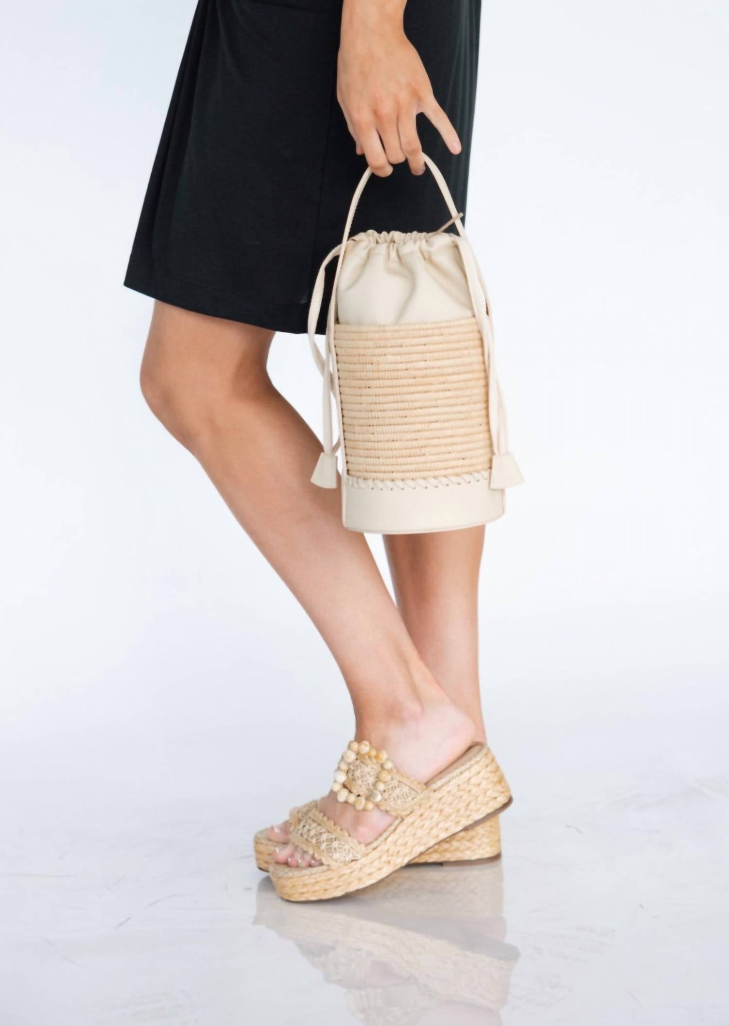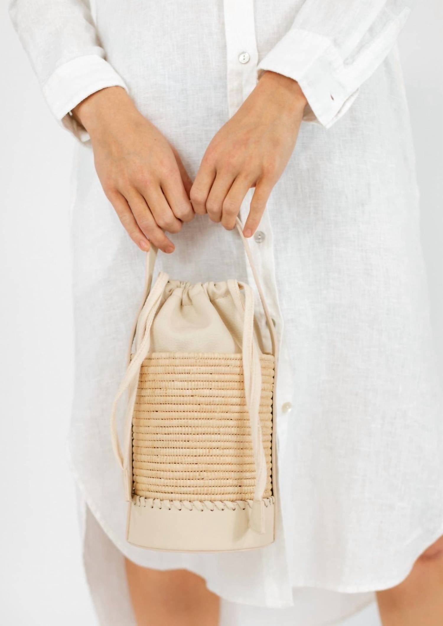Lipstick, check. Mints, check. Credit card, check. The cutest little bag that holds all of your necessities. The Women's Kira Bucket Bag by Cleobella is a masterfully crafted handbag that effortlessly elevates your accessory game. Ethically handmade in Morocco, this versatile piece boasts a unique shape and a neutral white hue, offering understated sophistication. Ideal for complementing any outfit, this bag integrates seamlessly into your wardrobe. Crafted with care, it stands as both a subtle and striking choice for your handbag collection.