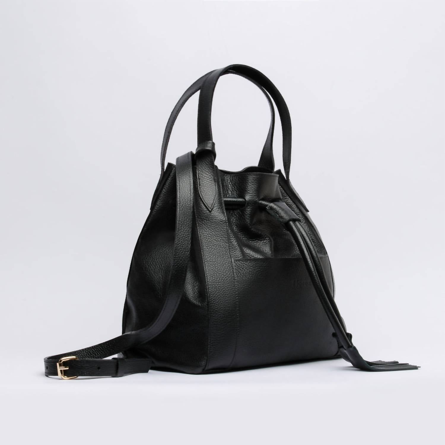 Introducing the Harper Bucket Bag by Florez, a stylish and functional shoulder bag crafted from high-quality leather in a warm caramel hue. It features two exterior pockets, an interior zippered pocket, and a detachable zippered pouch for added organization. The spacious interior, complete with a drawstring closure and adjustable strap, makes it ideal for daily wear or casual outings. Dimensions: 11.8" height, 6.3" depth.