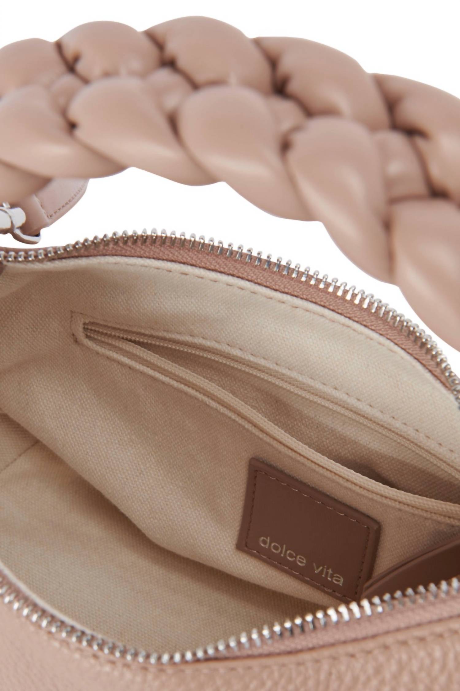 This crossbody bag will be your go-to bag of the season. Explore the perfect blend of style and function with the Women's Pippa Crossbody Shoulder Bag by Dolce Vita, crafted from real pebbled leather for a chic and durable finish. This bag, available in a versatile Beige Cafe shade, features a trendy braided handle and a detachable, adjustable crossbody strap with a 22" drop for personalized wear. It offers a top zipper closure for security and includes an interior zipper pocket to keep your essentials organized. Dimensions: 7.5" Height, 11" Width, and 4.5" Depth. Origin: Imported.