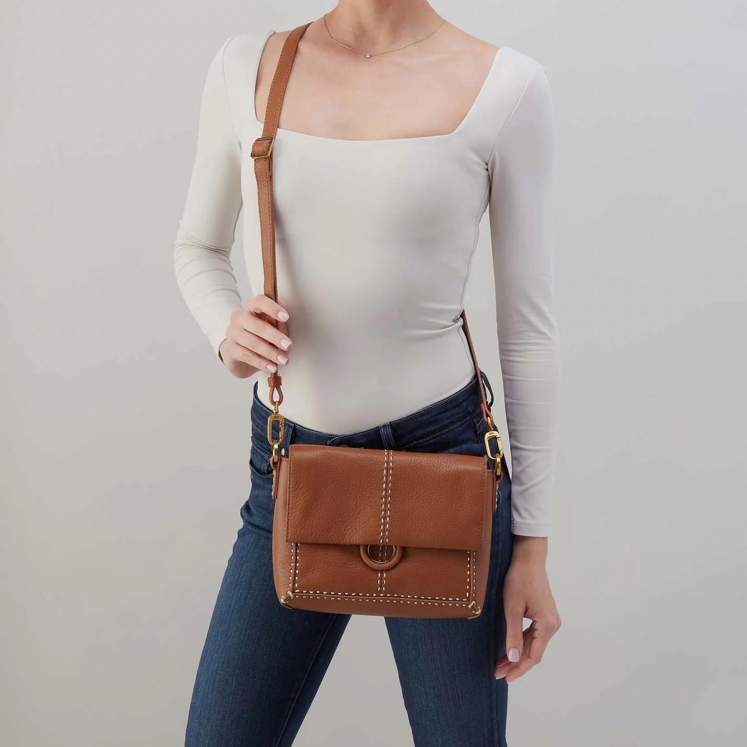 This crossbody bag will be your go-to bag of the season. Introducing the Austin Flap Crossbody Bag by HOBO, a stylish and functional accessory for the modern trailblazer. Crafted from buttery soft pebbled leather in a warm honey hue, this bag features a hidden magnet closure for added security and a sleek foldover design adorned with a ring detail. Measuring 9 inches in width, 6.5 inches in height, and 2.5 inches in depth, it offers thoughtful organization with an interior credit card slot, zip pocket, and an exterior signature phone pocket. Care for this timeless piece with suede and leather protector, leather spot cleaner, and leather dressing. Enjoy versatility with an adjustable and removable strap that offers a drop of up to 26 inches.