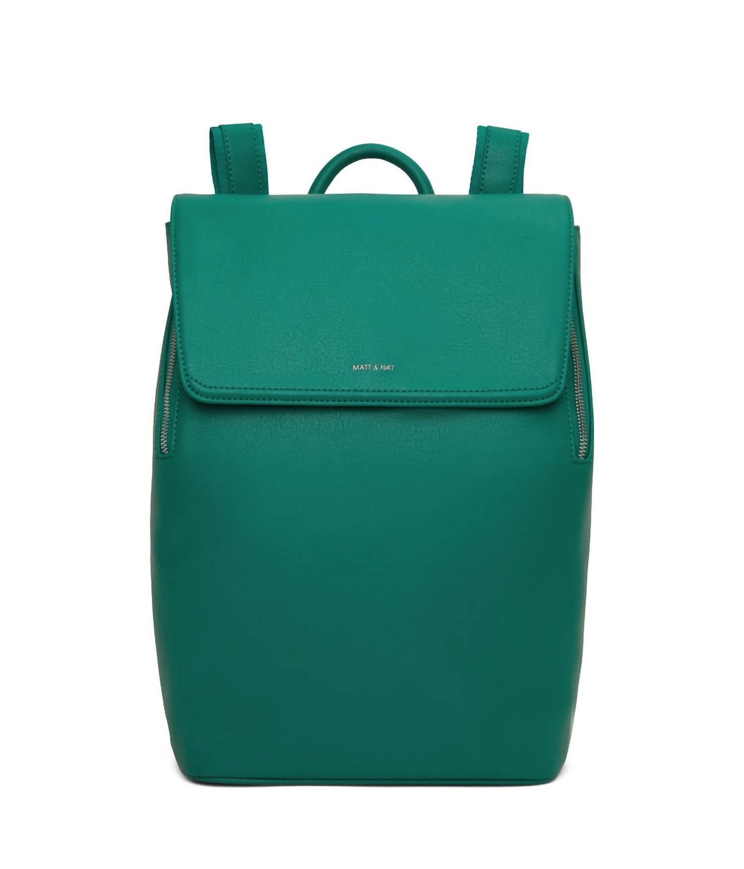 A backpack so versatile, you'll want to carry this with you everywhere. Meet the Unisex Arbor Fabimini Vegan Backpack in Peacock by MATT & NAT, an eco-friendly accessory perfect for daily adventures. Crafted from recycled plastic, this sustainable piece features a top flap with a magnetic closure and expandable gussets for increased capacity. Its interior boasts a zipper pocket, smartphone pocket, and a logo-embossed Arbor patch. With dimensions of 8.5"L x 12.5"H x 5"D and adjustable back straps ranging from 20” to 35”, this backpack combines practicality with conscious design.