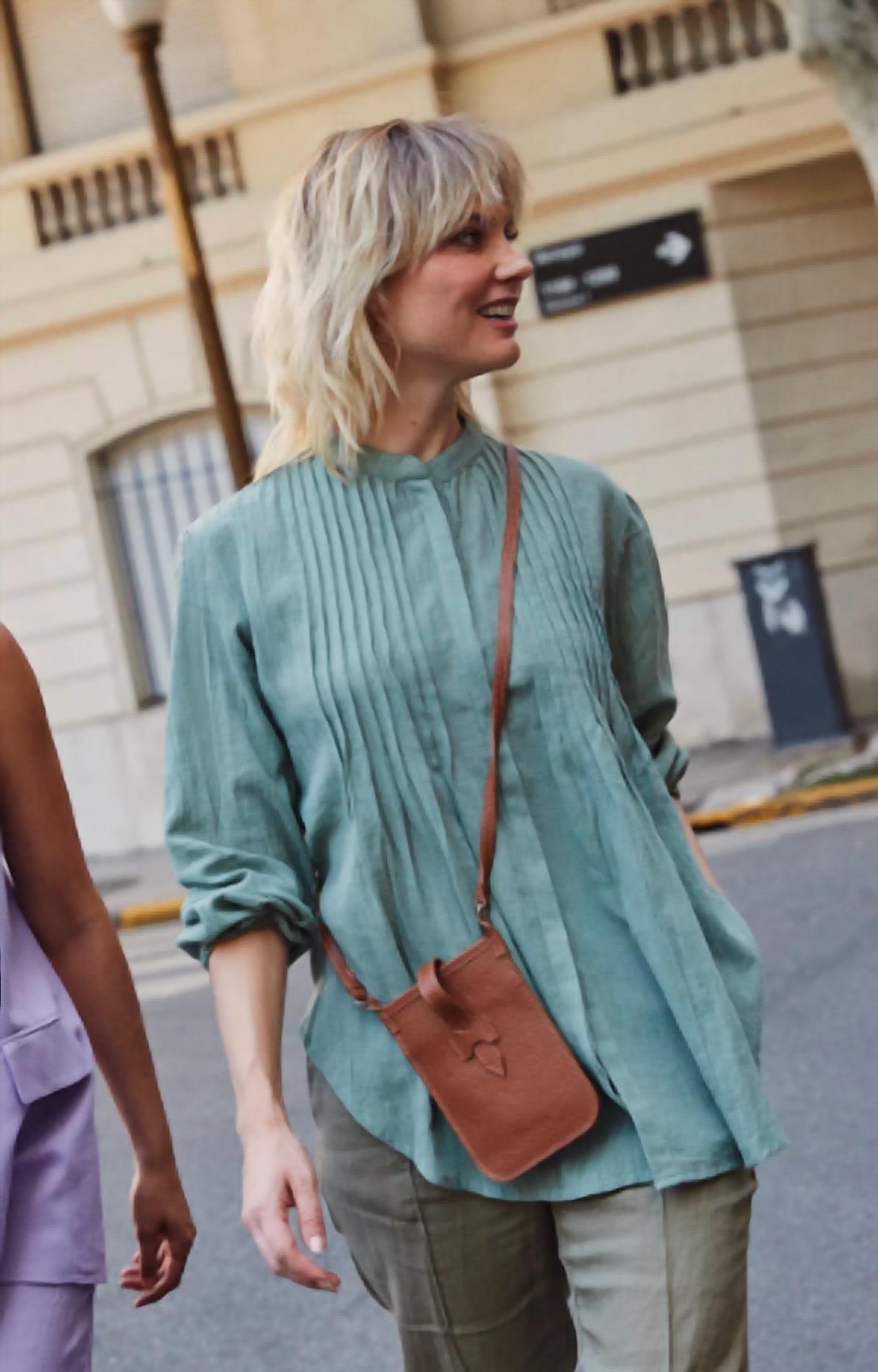 The crossbody bag is a trend that is here to stay and we especially love this style. Introducing the Women's Phone Crossbody Bag by MESCH, a chic accessory in a rich caramel hue that combines style and functionality. Crafted from luxurious leather, this bag features a practical cardholder on the back and an adjustable strap for perfect comfort. Measuring 7" in height, 4.2" in width, and 1.2" in depth, it is designed to keep your essentials secure and easily accessible. Perfect for any occasion, this crossbody bag is both a fashionable and practical choice.