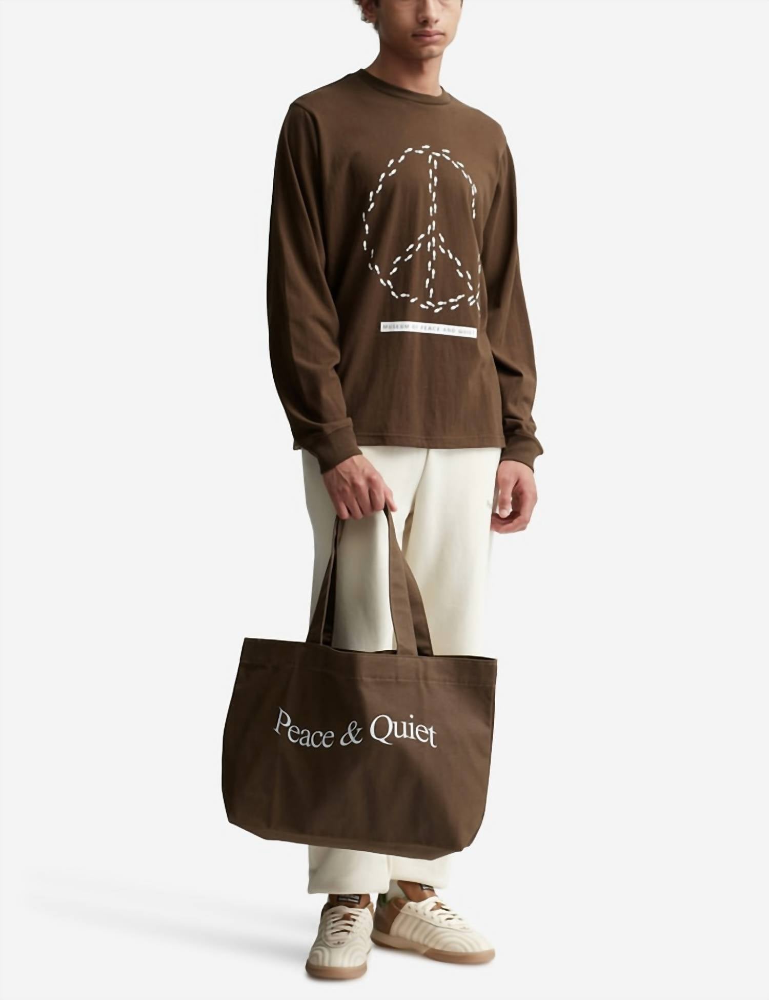 The perfect throw-it-in-and-go bag for your next weekend away or beach vacation! Its classic design will never go out of style and you'll be reaching for this bag season after season. Discover the Museum of Peace & Quiet's Unisex Wordmark Tote Bag, a durable accessory crafted from 100% heavy-duty cotton canvas. This versatile tote in a rich brown hue boasts a spacious design, measuring 18 inches in width and 11 inches in height, ideal for carrying all your essentials with ease. Made from premium cotton, it offers both style and substance for everyday use.