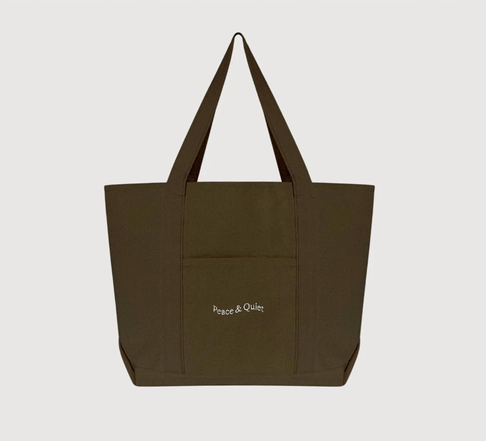 Aside from being the cutest bag ever, this tote is the perfect size to hold all of your vacation necessities. Pair this adorable bag with a flowing dress and some slides and you're all set! Introducing the Women's Classic Wordmark Boat Tote Bag by Museum of Peace & Quiet, a stylish and practical choice for any outing. Crafted from heavyweight 16oz cotton canvas, this brown tote features a gusseted bottom for extra capacity. It boasts 24-inch contrast handles with a 10.5-inch drop and includes both an exterior pocket and an interior accessories pocket with a handy key fob. Measuring 18.5" W x 11.5" H x 5.5" D, this tote is perfect for carrying your essentials with ease.