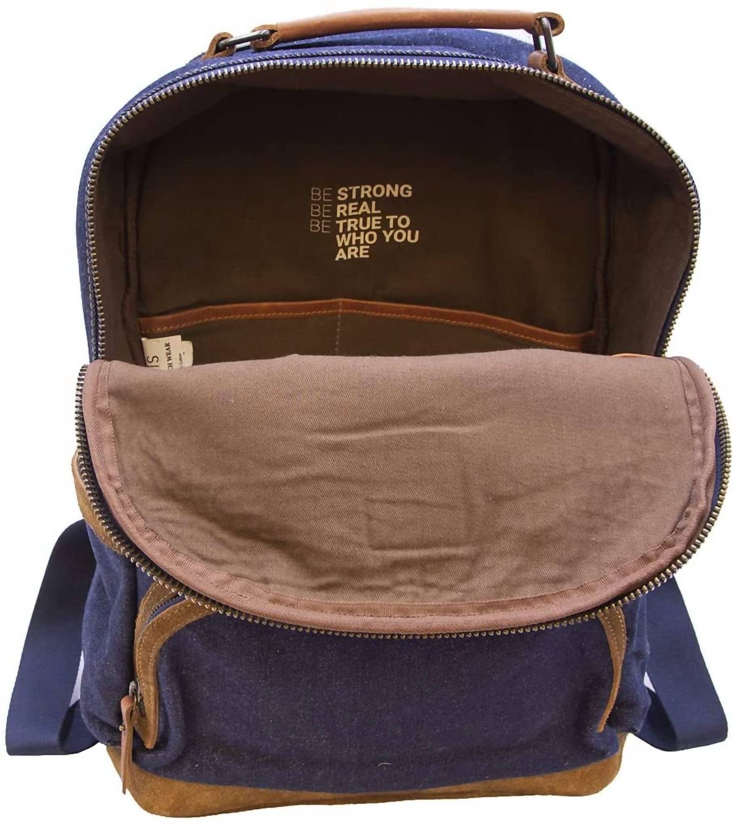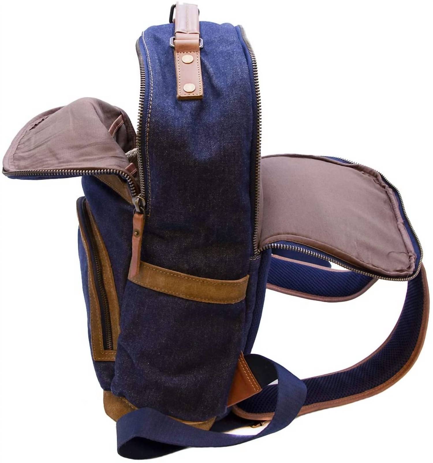 Not only functional, this backpack is stylish and fits everything you need in one place. It's a win-win! Crafted from durable blue denim, this elegant backpack is perfect for any outing, offering adjustable leather shoulder straps and a leather handle for easy carrying. Featuring two main compartments with internal pockets, and a front pocket with a zipper closure, it ensures your essentials are well-organized. Dimensions: 12" W x 16" H x 5" D.