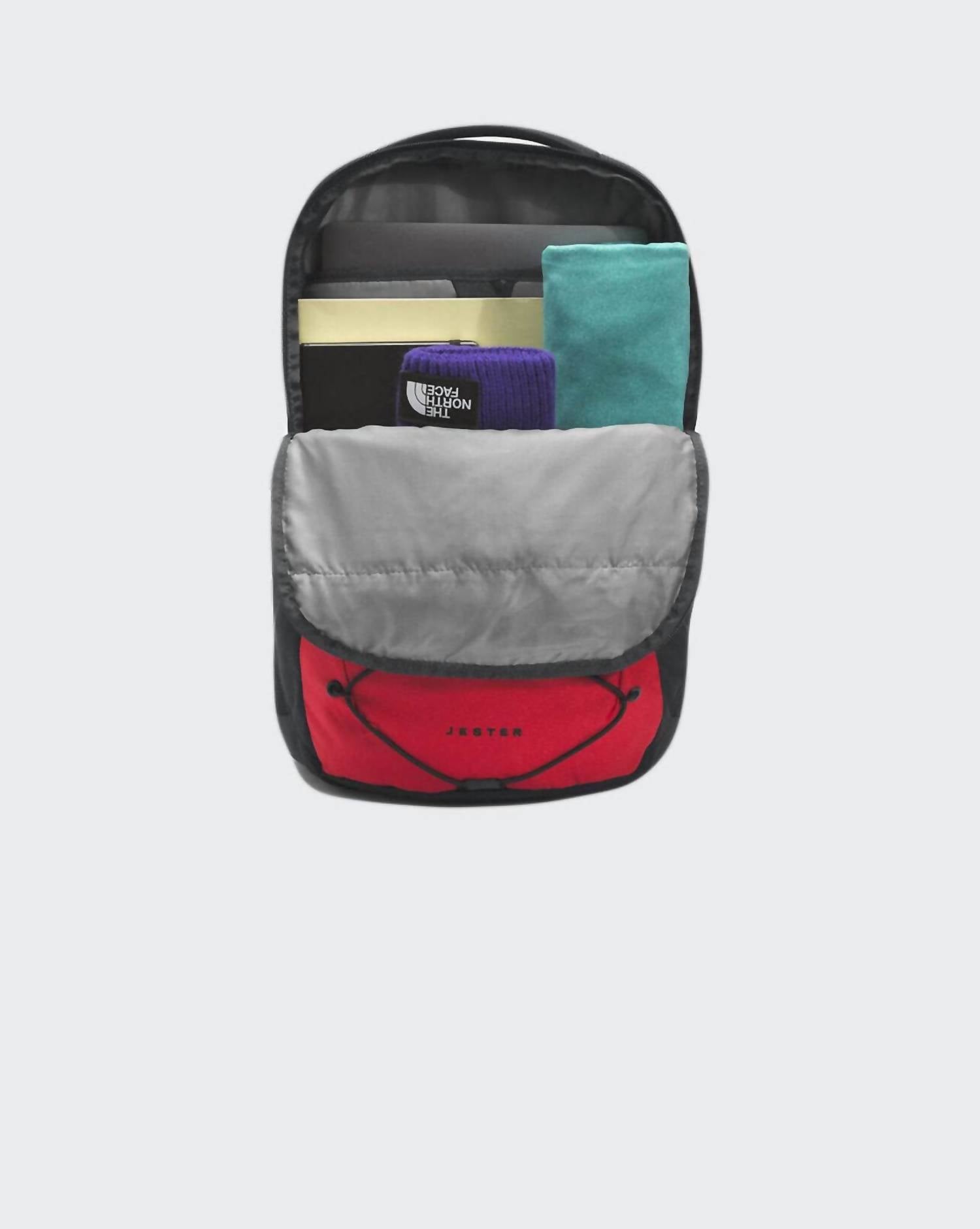 The perfect size backpack that fits everything you need! Introducing the Unisex Jester Backpack by The North Face, a practical and stylish choice in a striking red/black colorway. With dimensions of 18.13" height, 8.25" depth, and 11" width, this backpack offers ample space for all your daily essentials. Made for those on the go, this versatile backpack combines functionality with a bold design. Perfect for both casual and school settings, it will soon become your go-to carryall.