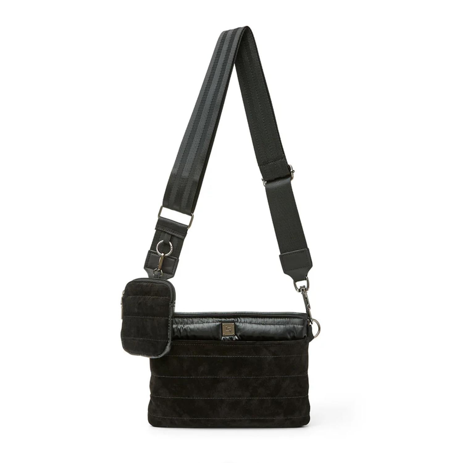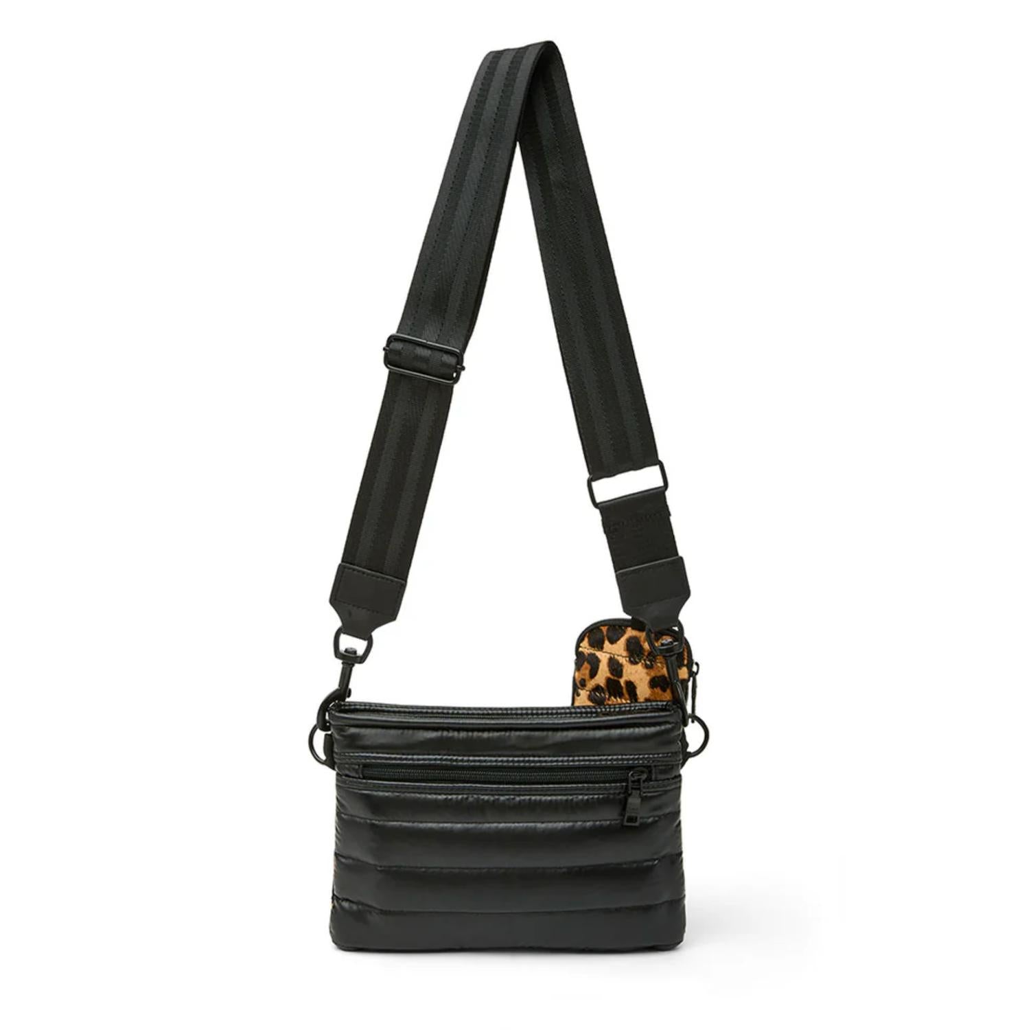 This crossbody bag will be your go-to bag of the season. Elevate your city style with the Women's Downtown Crossbody Bag by THINK ROYLN in Wild Leopard/Black. This versatile bag features a luxe textured cowhide and polyester nylon exterior with a 100% polyester interior, offering style and durability. It includes a top zipper closure, front slip pocket, back zip pocket, and a removable clip-on bag ideal for essentials, all within a compact design measuring 7.75" in height and 10.5" in width. Easily transform this piece with its two detachable straps to carry it as a crossbody, shoulder, or handle bag.