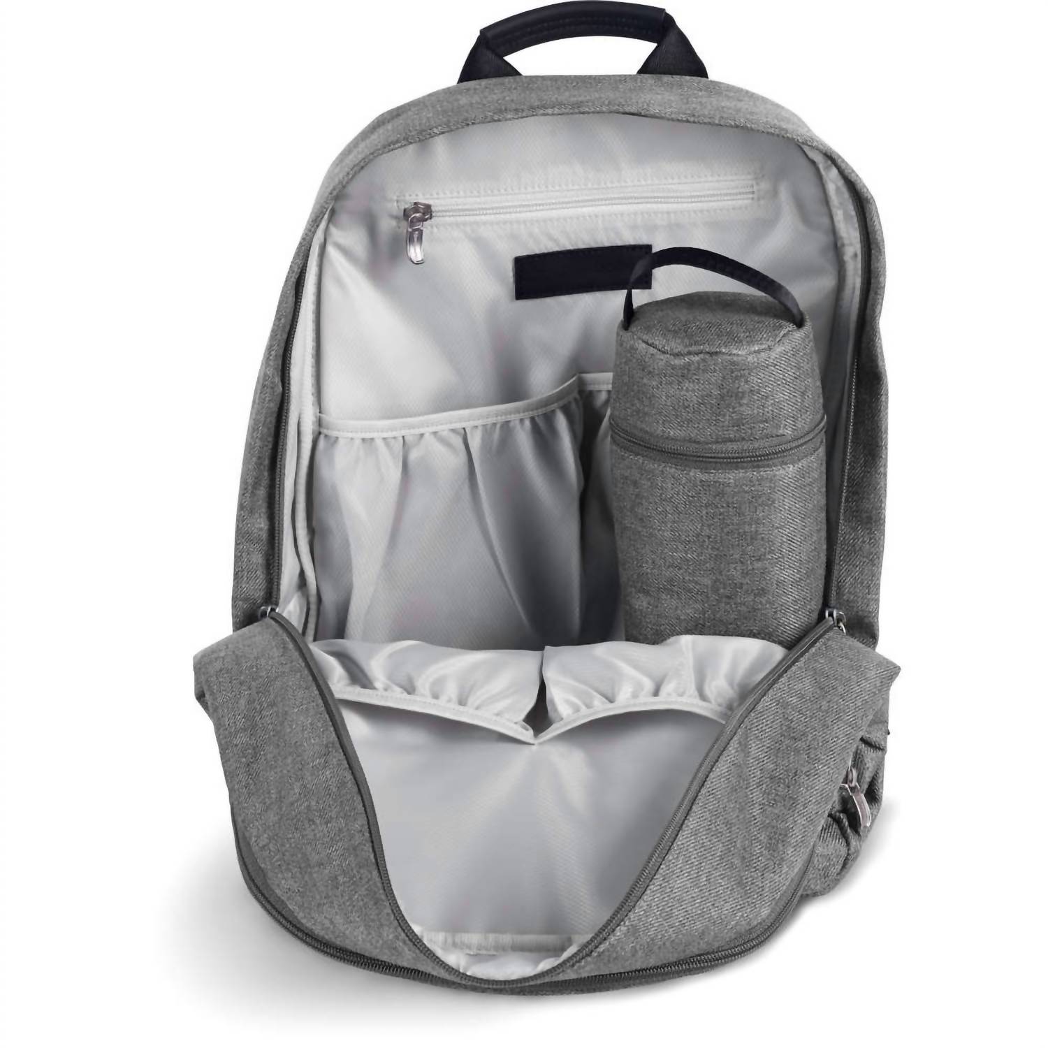 Discover the ultimate parenting essential with this thoughtfully designed baby bag, expertly crafted to provide a harmonious fusion of style and practicality. Its spacious interior and multiple compartments make organizing baby essentials a breeze. Introducing the UPPAbaby Changing Backpack in elegant Pearl Gray, designed for the modern parent who values functionality and style. This chic baby bag features a versatile nylon blend with full-grain leather accents, offering durability with a water-resistant finish. Adjust the backpack straps to your preference and enjoy the ease of snap-on, snap-off stroller attachment. With a spacious interior, multiple compartments, and extras like an insulated bottle case and changing pad, this backpack measures 12" in height, 10" in width, and 5" in depth.