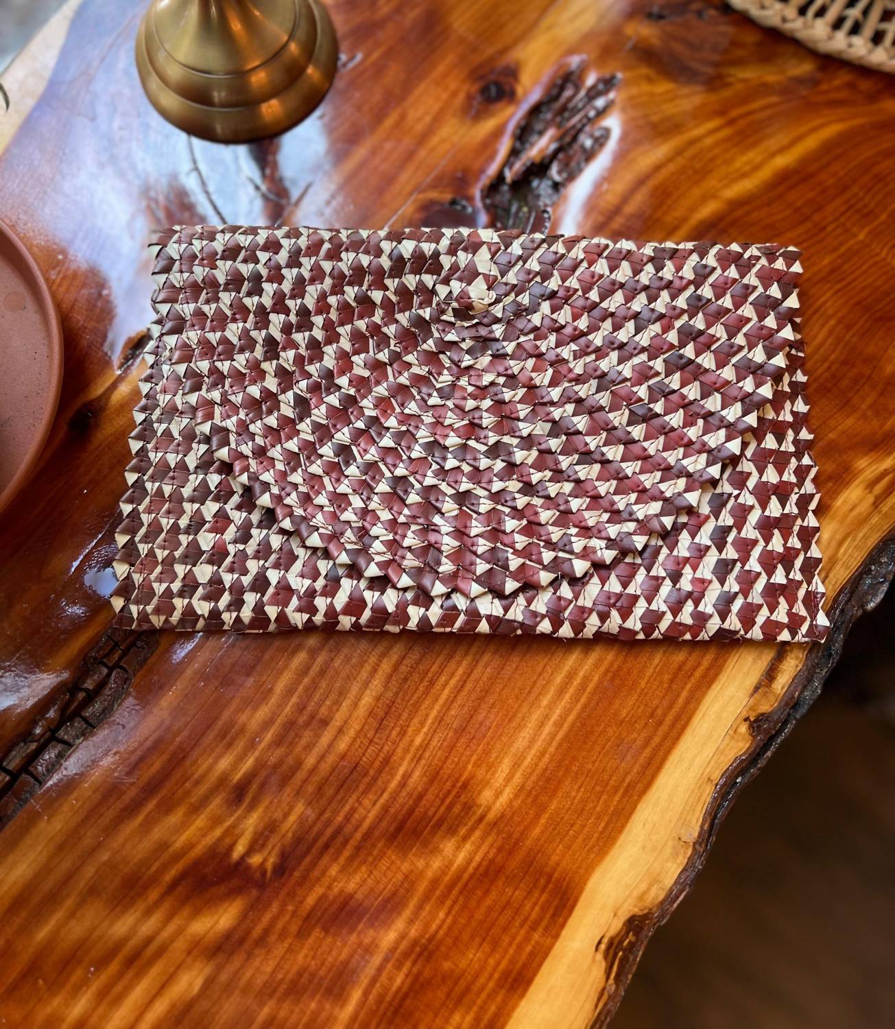 The perfect clutch for an evening out on the town. The Women's Rattan Clutch by Village Thrive combines stylish sophistication with a playful twist, making it the perfect accessory for your daily necessities. Crafted from palm leaf and brass, this clutch features a soft fabric lining and a change pocket for added convenience. Measuring 11" x 7", it's perfectly sized for essentials. Available in four distinct colors, including this elegant black option.