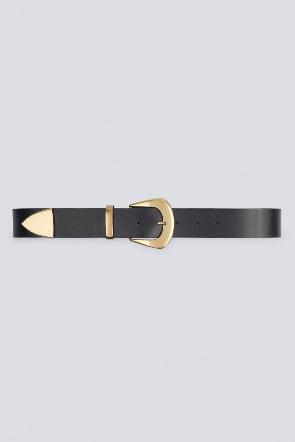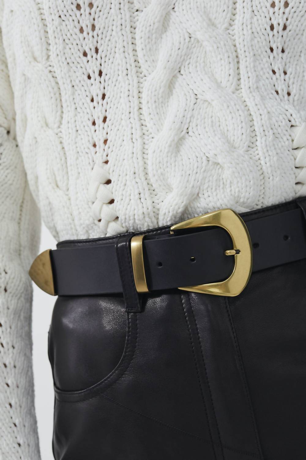 The Women's Copp Leather Belt by IRO boasts a sophisticated blend of black and gold hues, perfect for elevating any outfit. Crafted from soft vegetable-tanned premium cowhide leather, this accessory ensures durability and a luxurious feel. Expertly designed to meet high standards, it stands as a testament to IRO's commitment to quality. Add this timeless piece to your collection for a chic and versatile style statement.