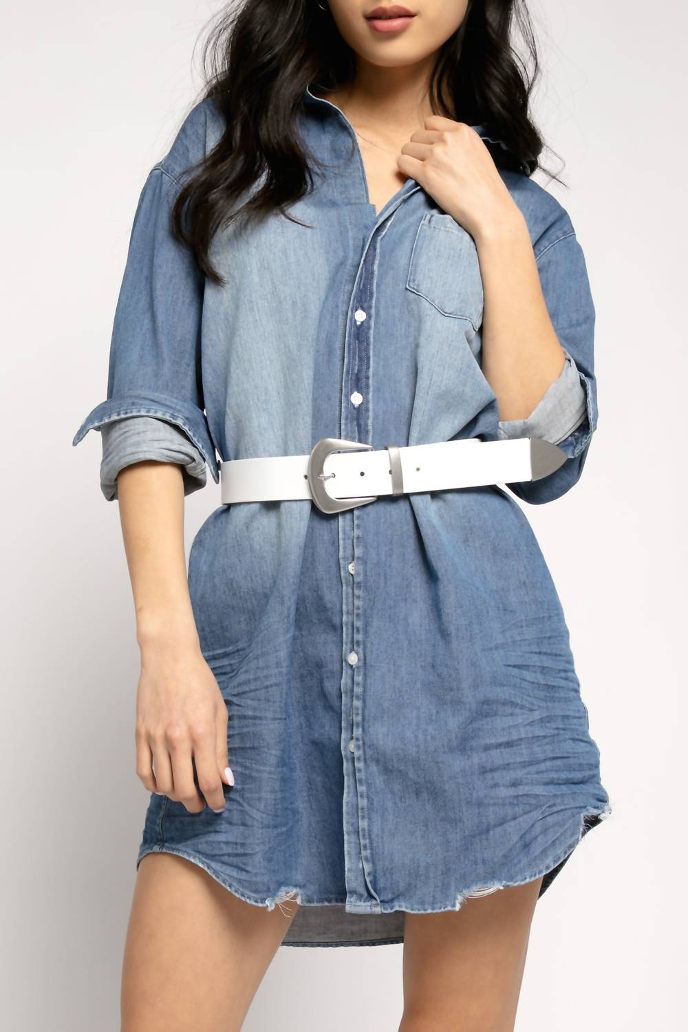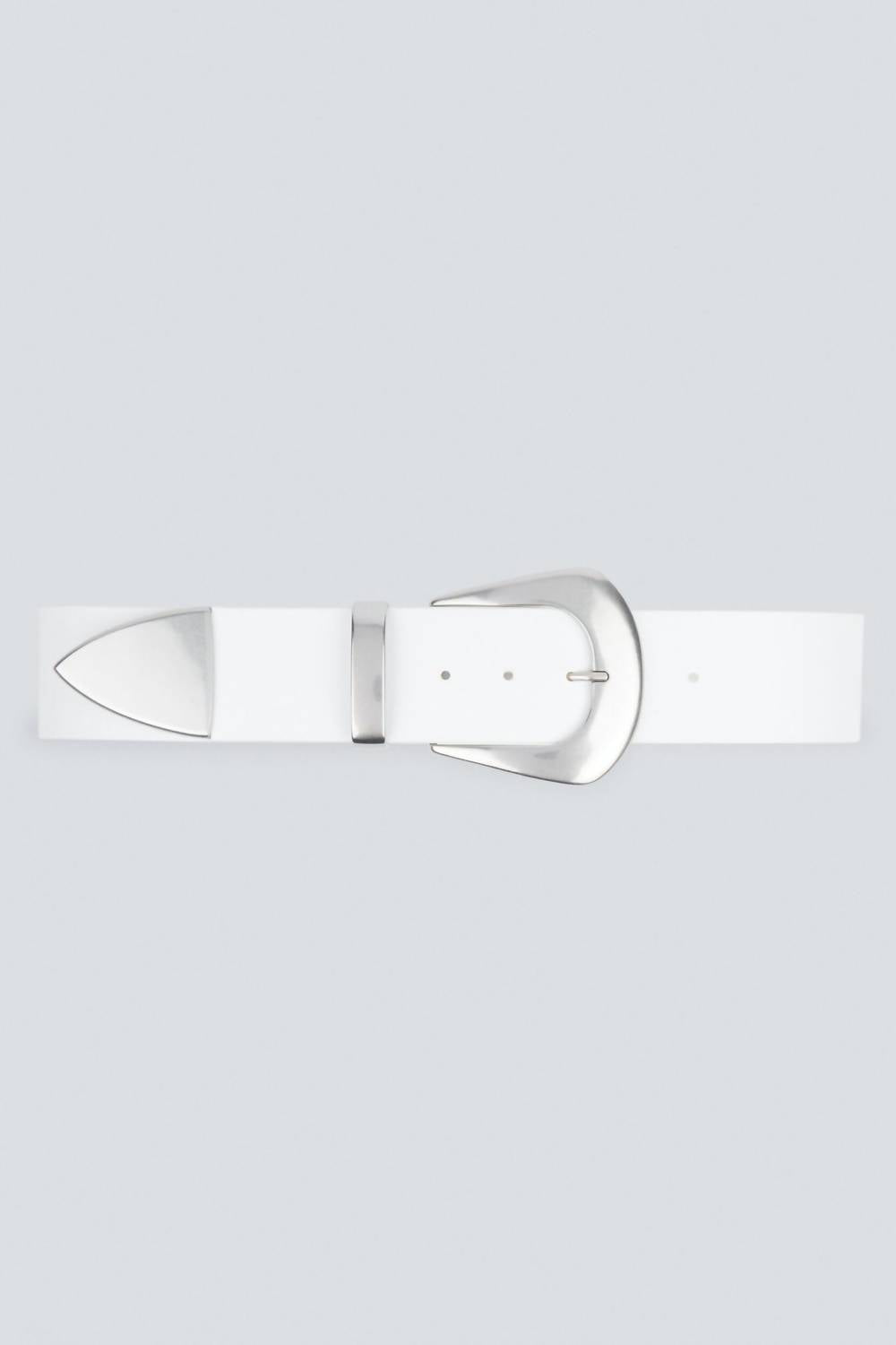 Introducing the Women's Copp Leather Belt by IRO, a stylish accessory in crisp white with silver accents. Crafted from soft, vegetable-tanned, superior quality cow hide leather, this belt offers both durability and elegance. Embrace the sophisticated design that seamlessly enhances any outfit. Made by IRO, this belt represents exquisite craftsmanship and style.