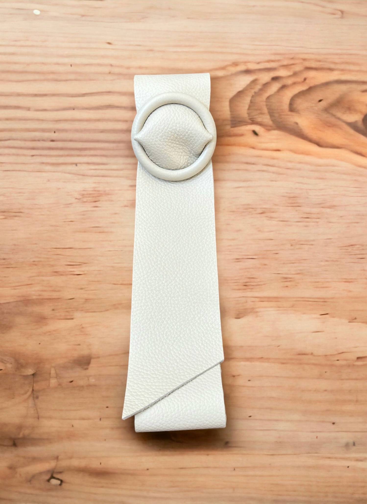 Upgrade your accessory game with this stylish and versatile belt that will tie any outfit together. This must-have accessory is classic in its design and will never go out of style. Step out with confidence wearing the Women's Clara Leather Belt by Made in Italy, a luxurious accessory in timeless cream. Crafted from 100% genuine leather, it features a striking large covered buckle that elevates any ensemble. The belt measures 42” x 2.75” with a 3.25” buckle. Designed as one size fits most, accommodating sizes S - XL. Made in Italy.