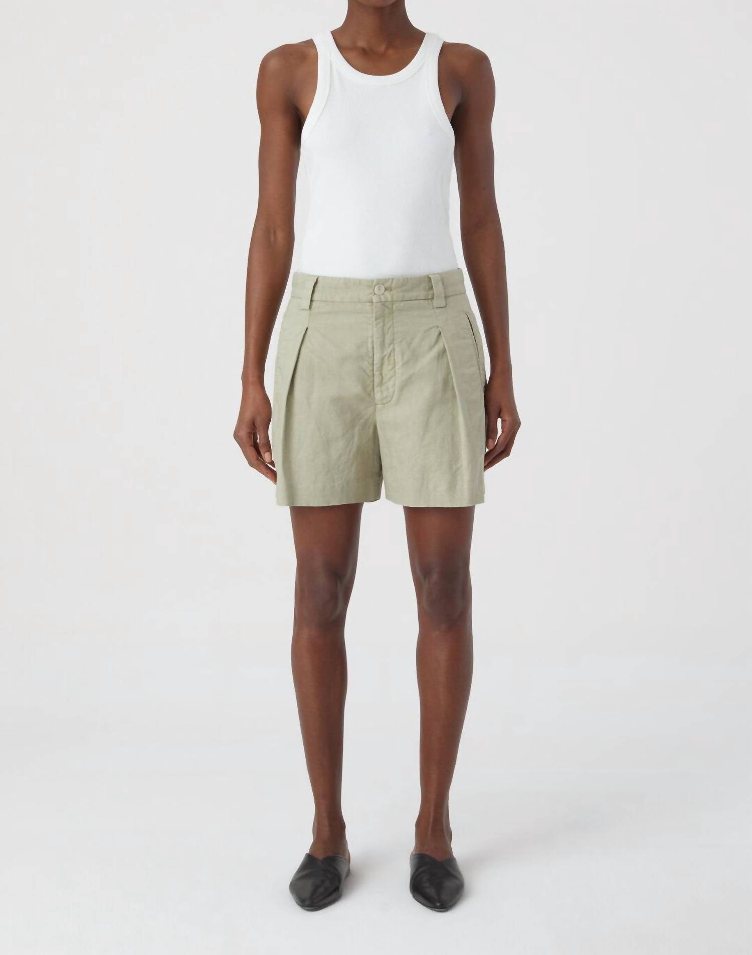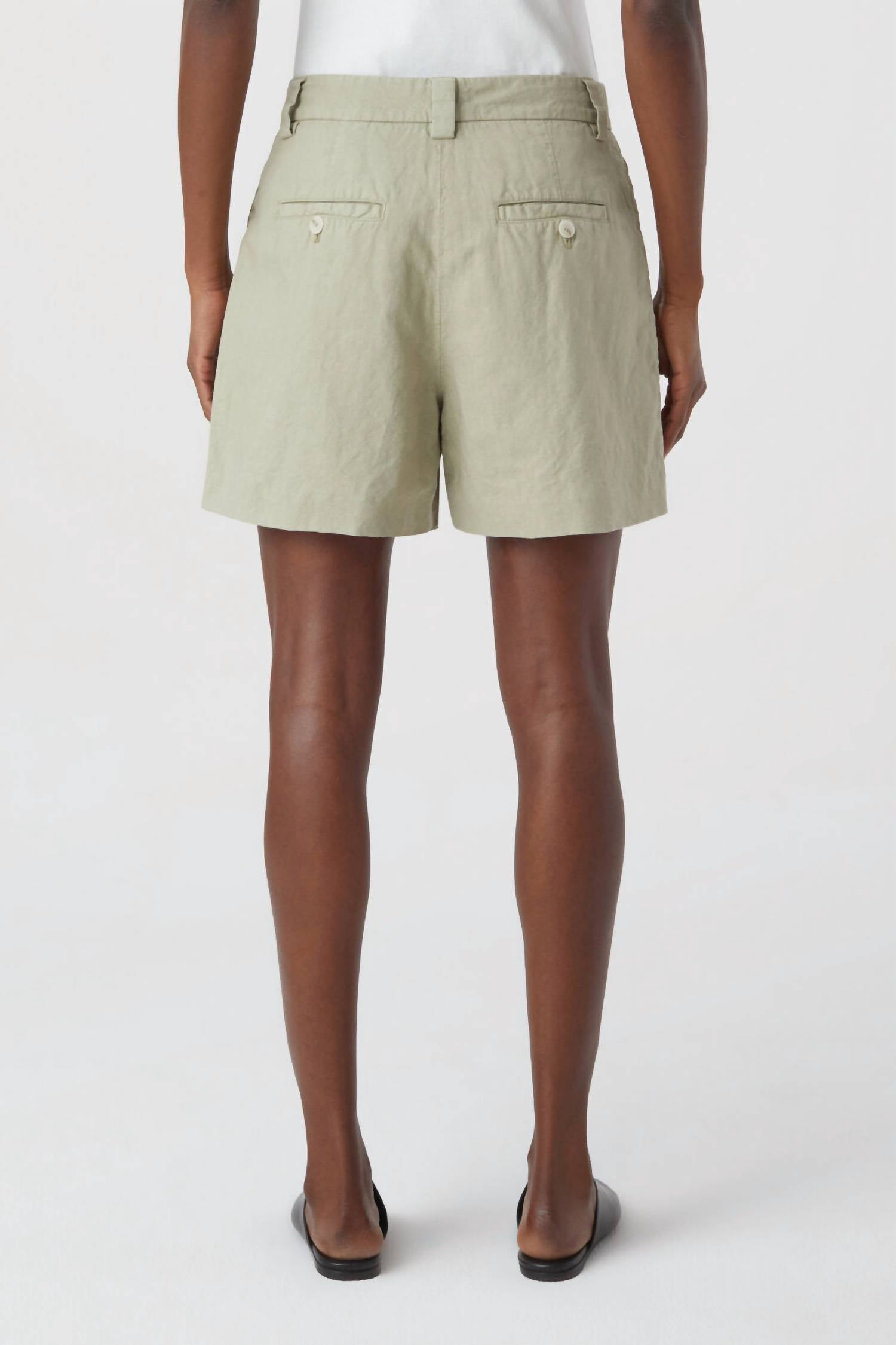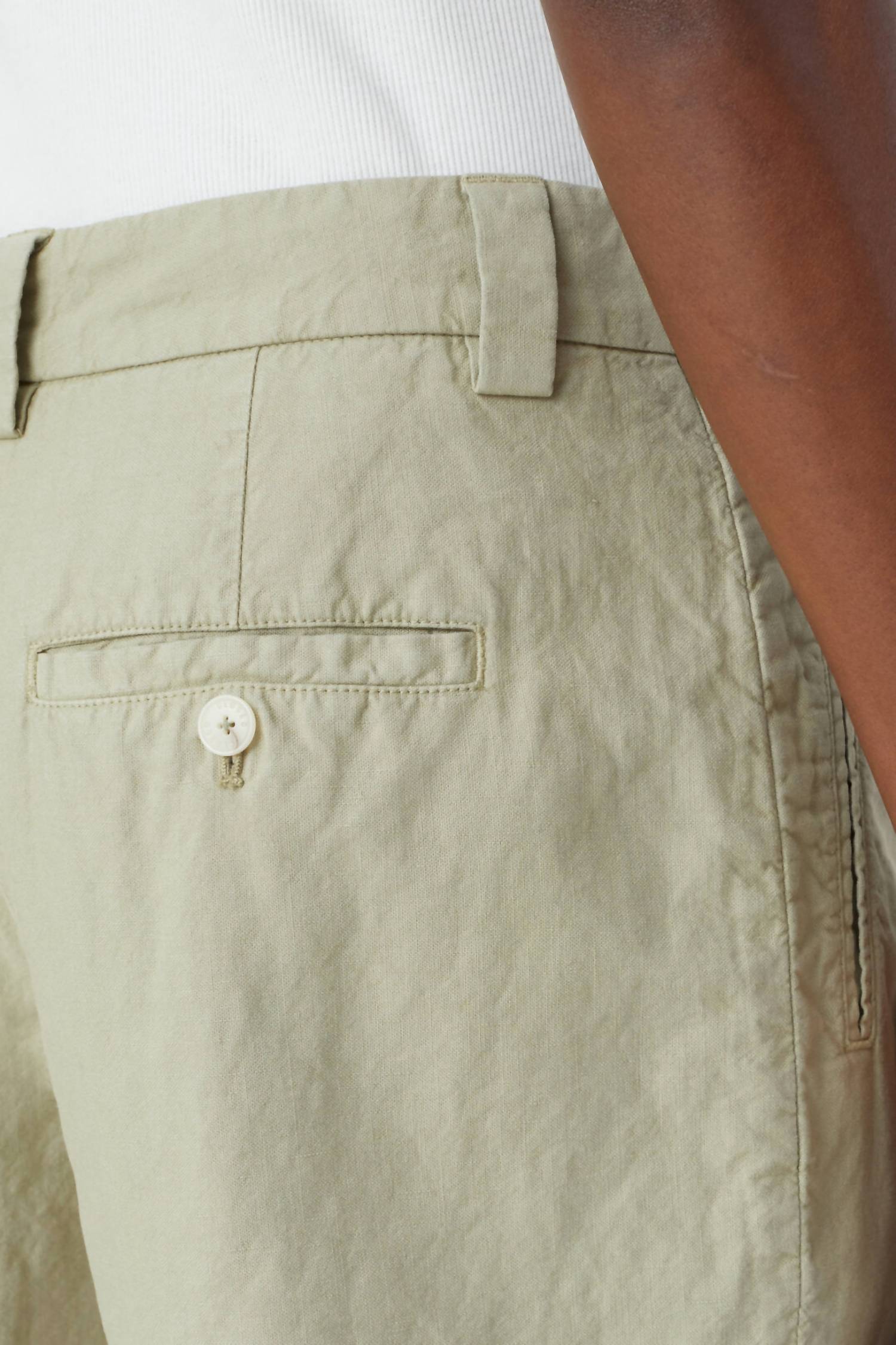 Embrace the perfect blend of comfort and style with these fashionable women's Bermuda shorts, expertly designed to offer a flattering fit and versatile wear. Discover the Mid Waist Linen Cotton Blend Shorts by CLOSED, a minimalist staple perfect for summer outings. These light moss green Bermudas offer a regular fit and feature piped and buttoned back pockets for added style and functionality. Made with 51% linen and 49% cotton in Romania, they promise breathable comfort and a vivid textured finish. Closure is achieved with a button, and they are easy to care for with machine wash and lay flat to dry instructions.
